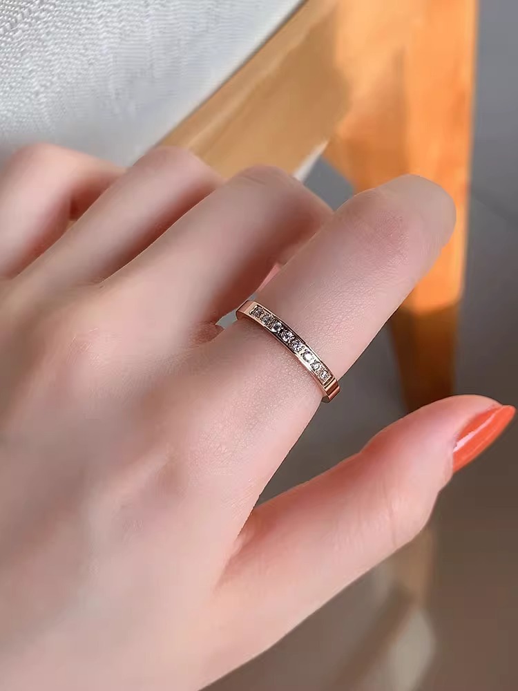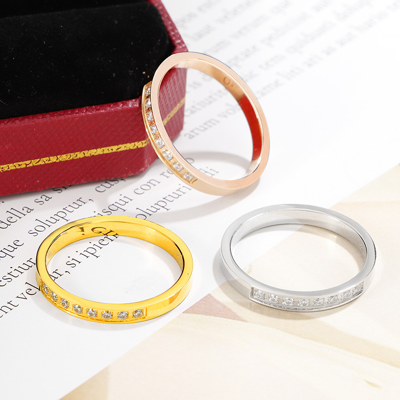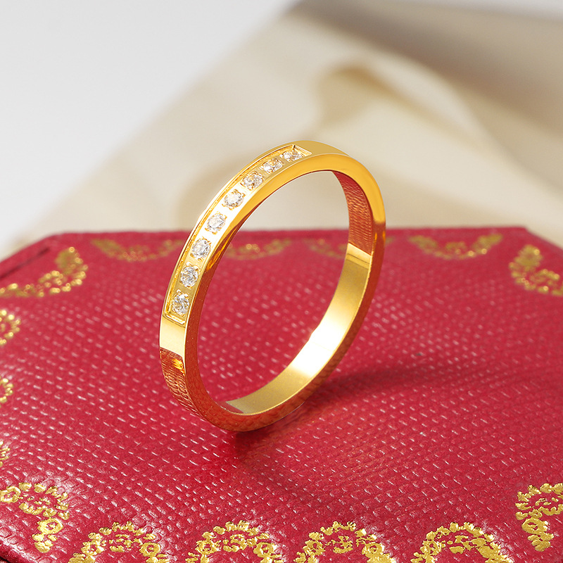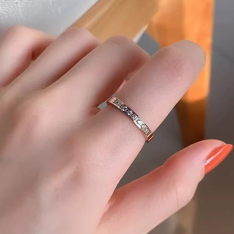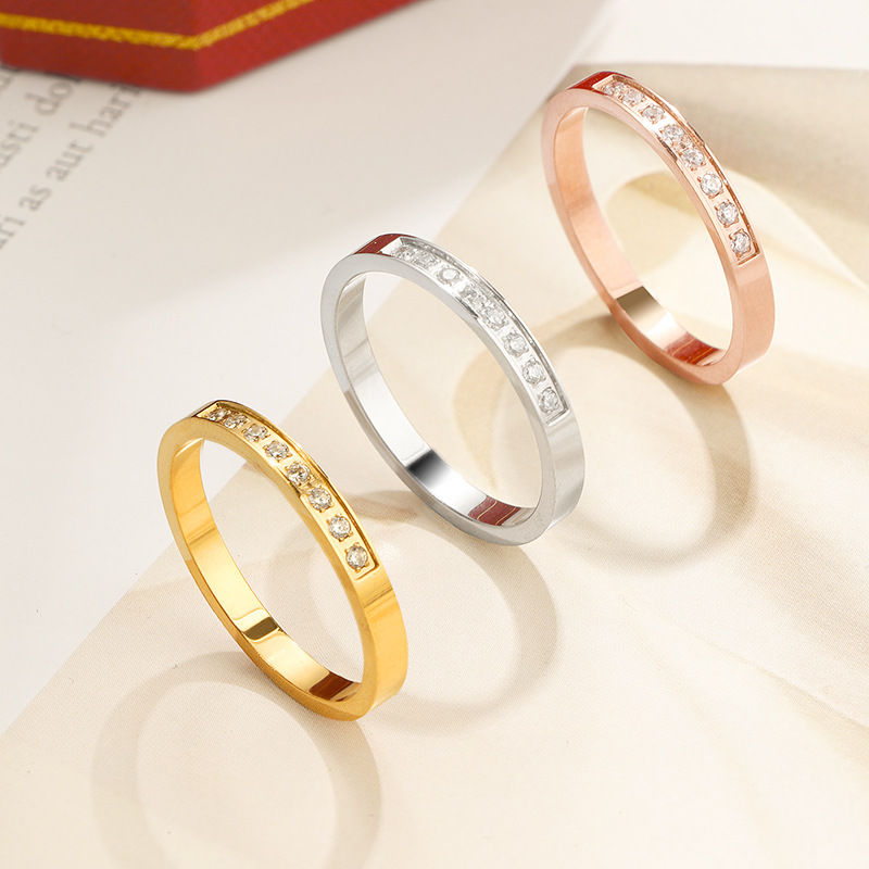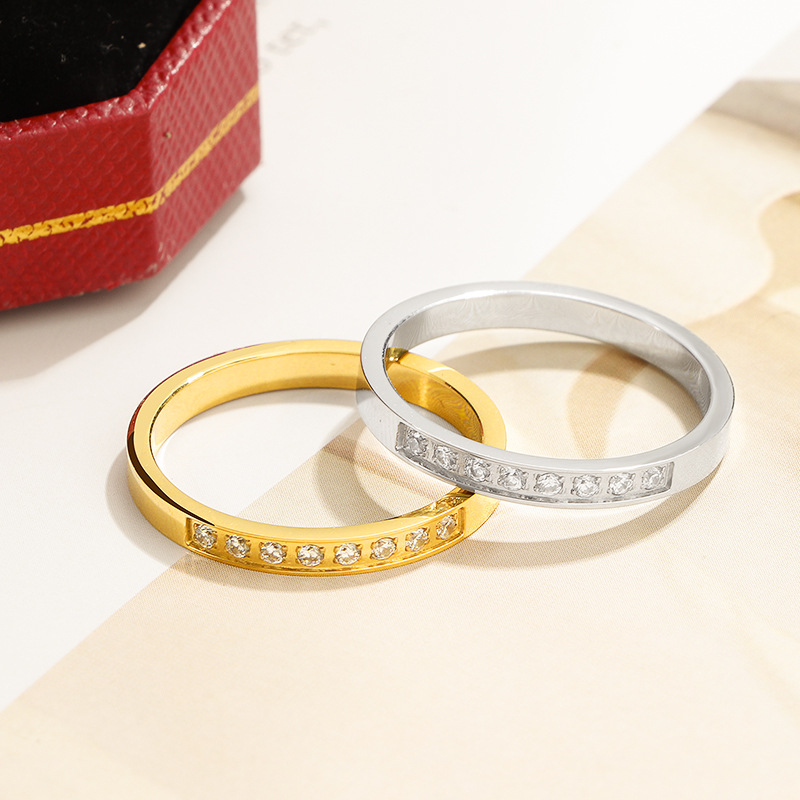 Europe and the United States cross-border explosions CNC diamond ring eight diamond titanium steel plated 18k gold ring women's cold wind food ring