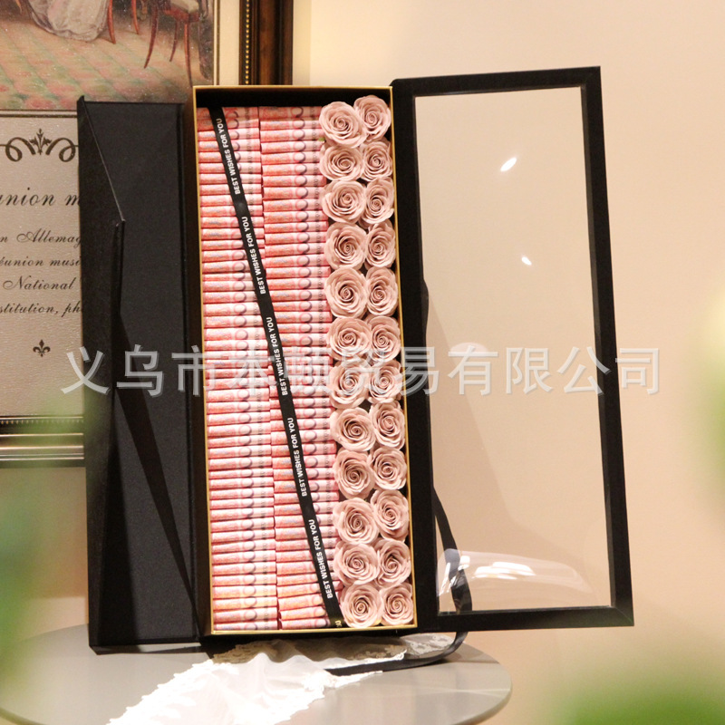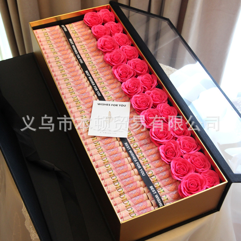 Specification model: Jazz box—jue black + 24 red roses + sponge + lamp + paper clip + bag