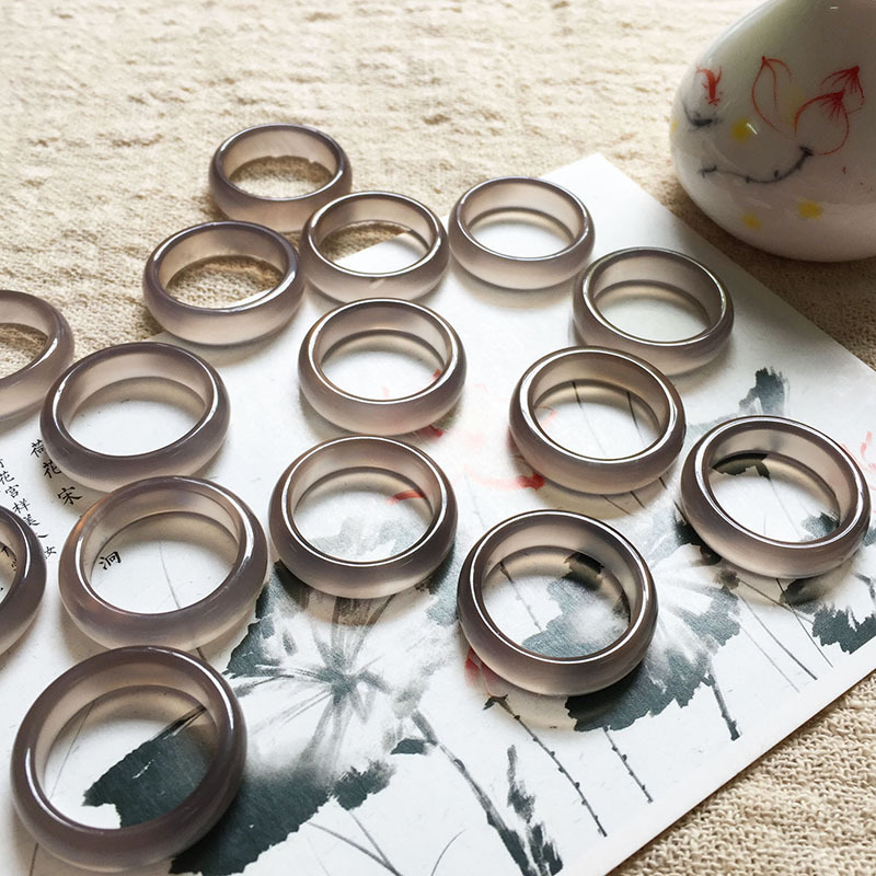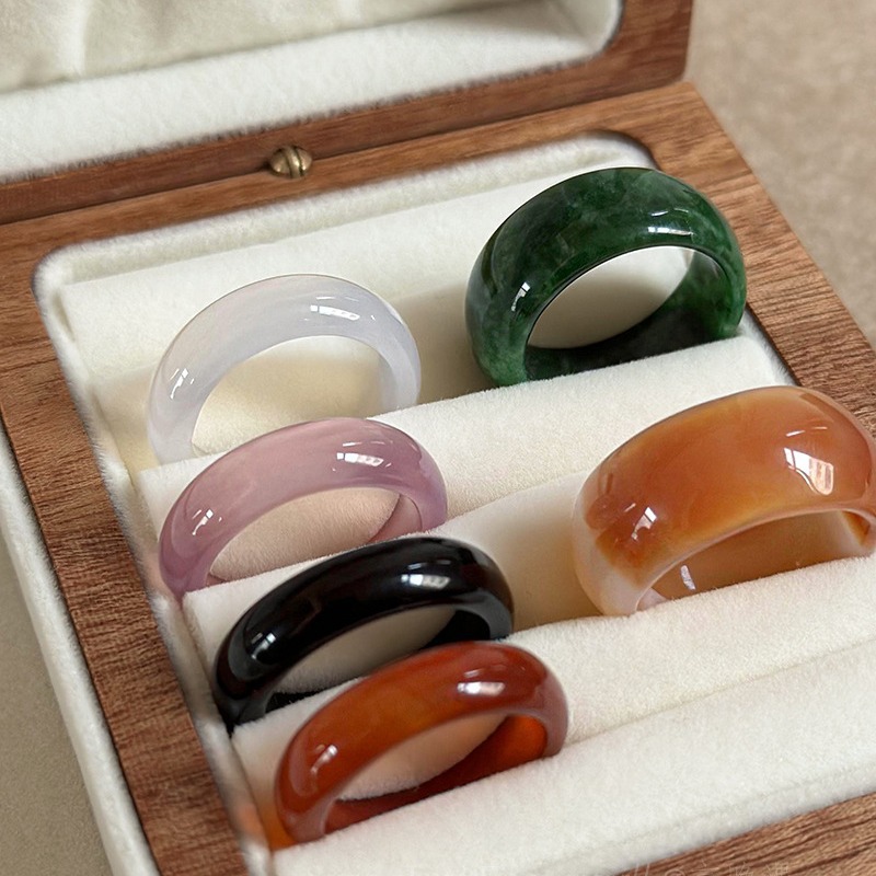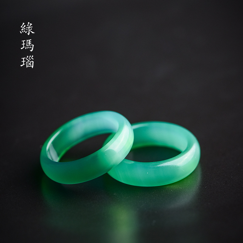 New Chinese-style Agate Running Ring Ring Natural Green Chalcedony Ring Design Retro Light Luxury Niche Index Finger Ring