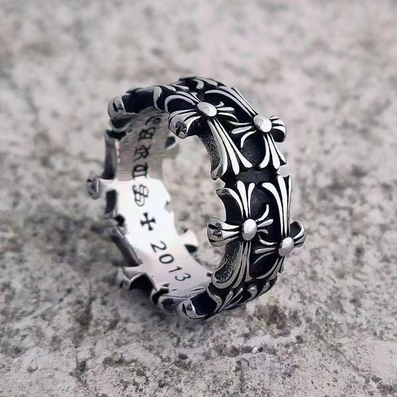 Crown Ring Cross Men's and Women's White Copper Couple Jewelry Unisex Style Exaggerated Eternal Tomb Funeral Ring ins Trend