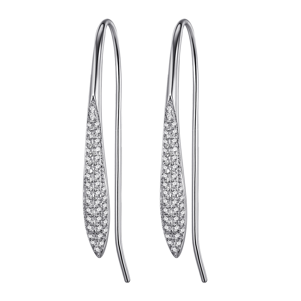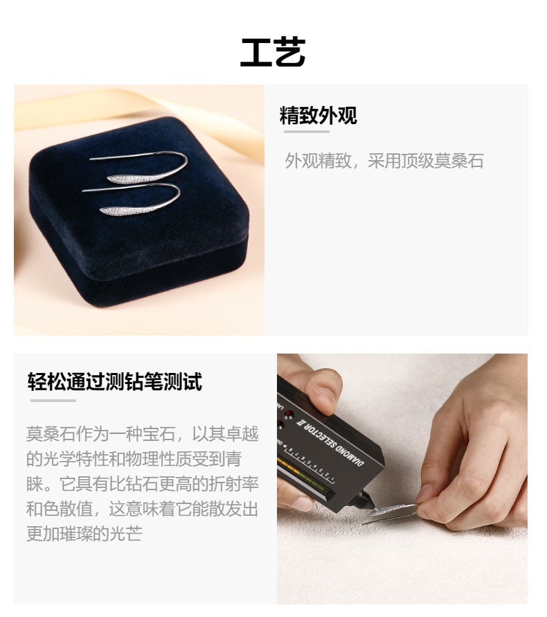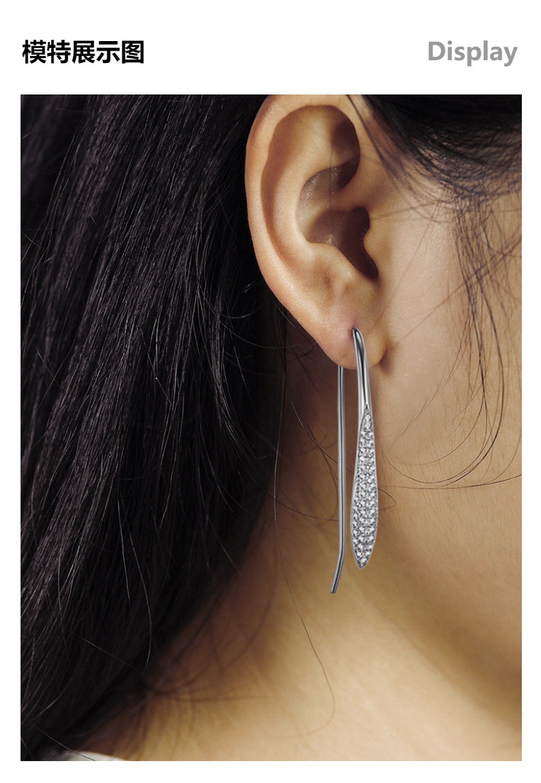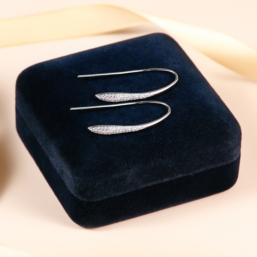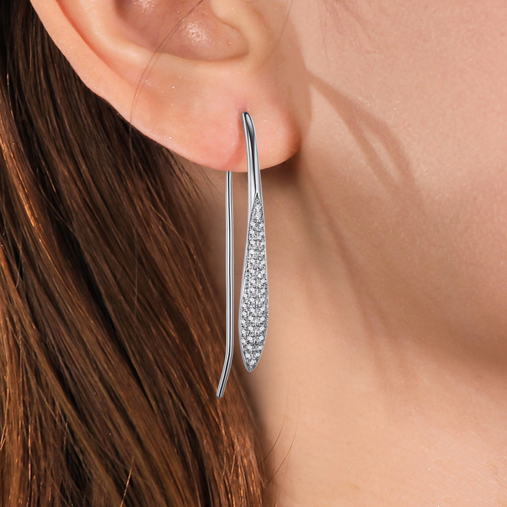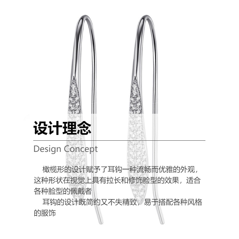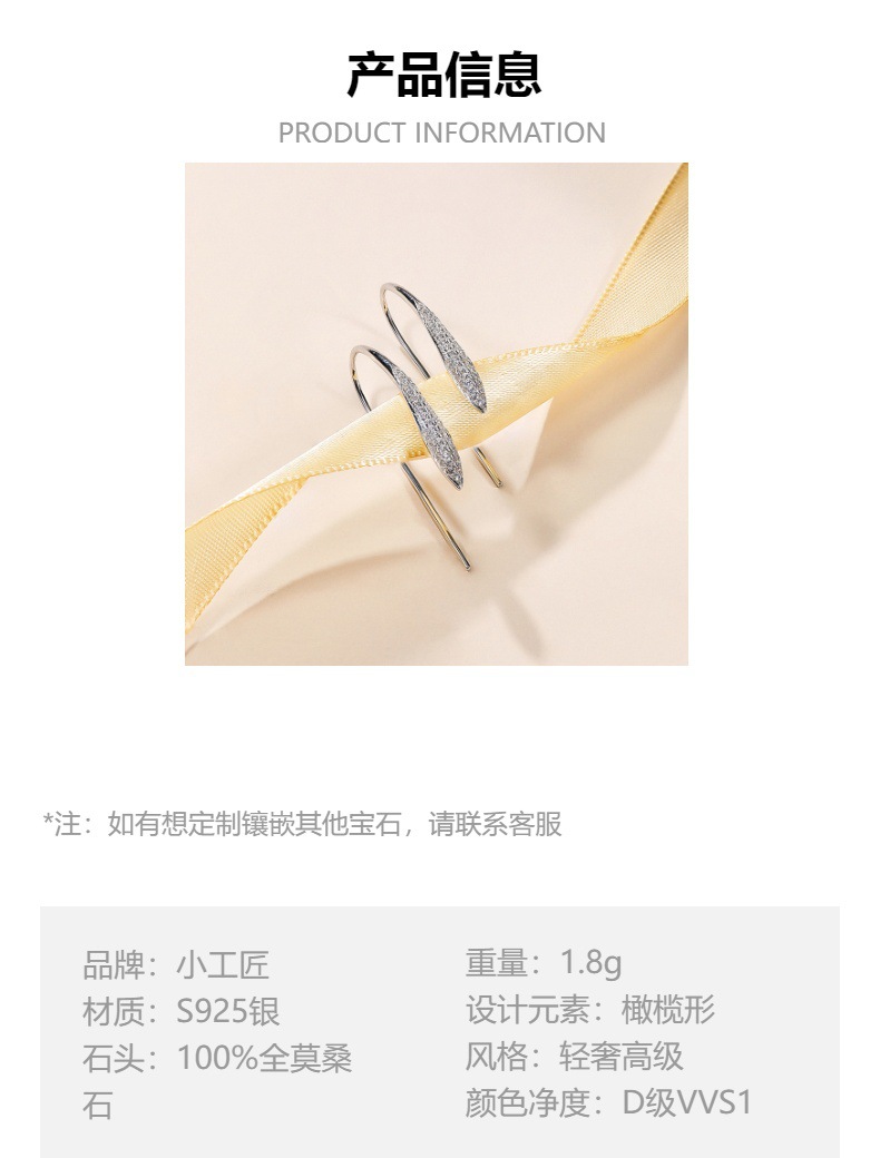 Cross-border S925 Sterling Silver Moissanite Ear Hook Light Luxury Elegant Olive-shaped Full Diamond Slender Leaf Earrings