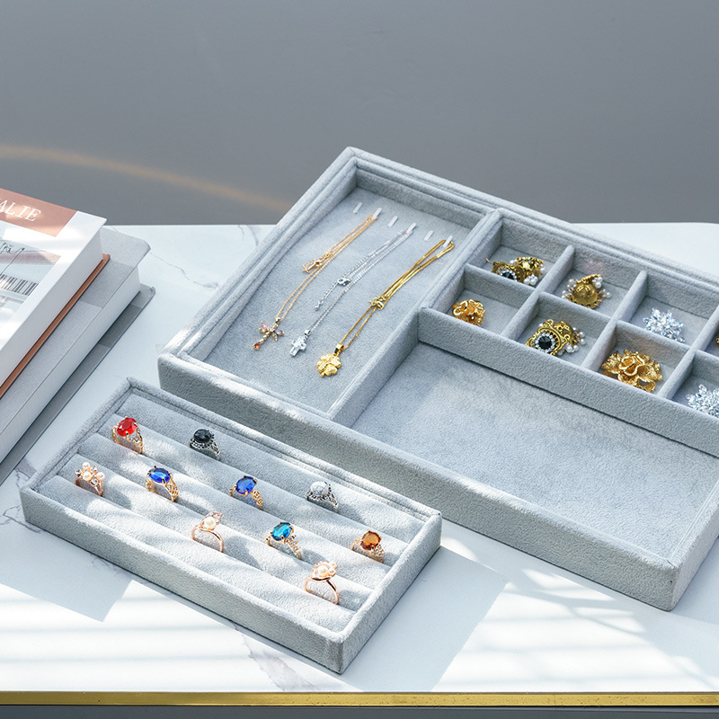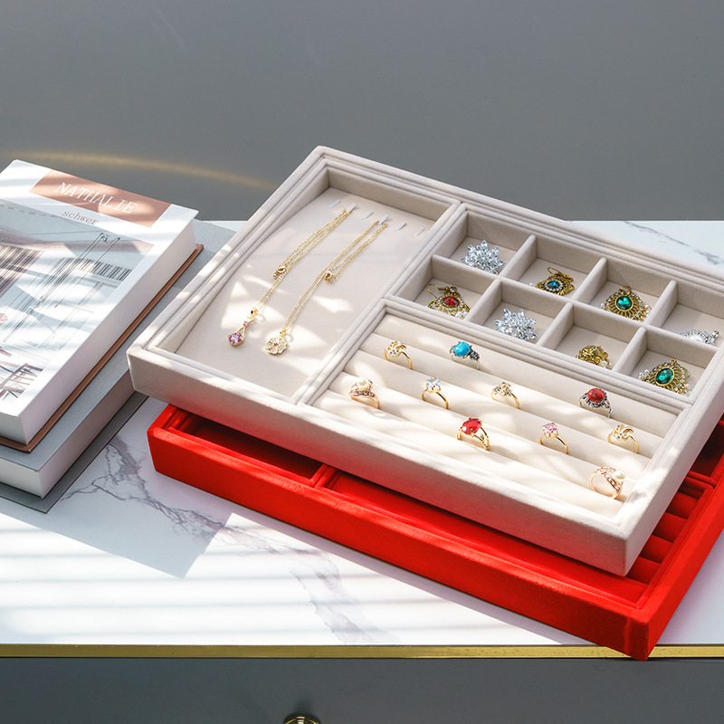 Ice Velvet Jewelry Plate Earrings Display Box Jewelry Necklace Ring Multi-functional Jewelry Storage Box