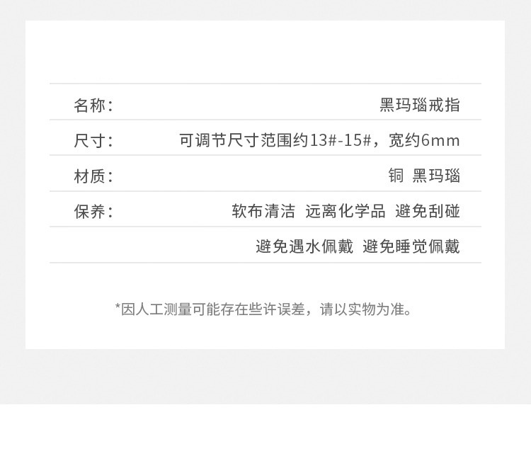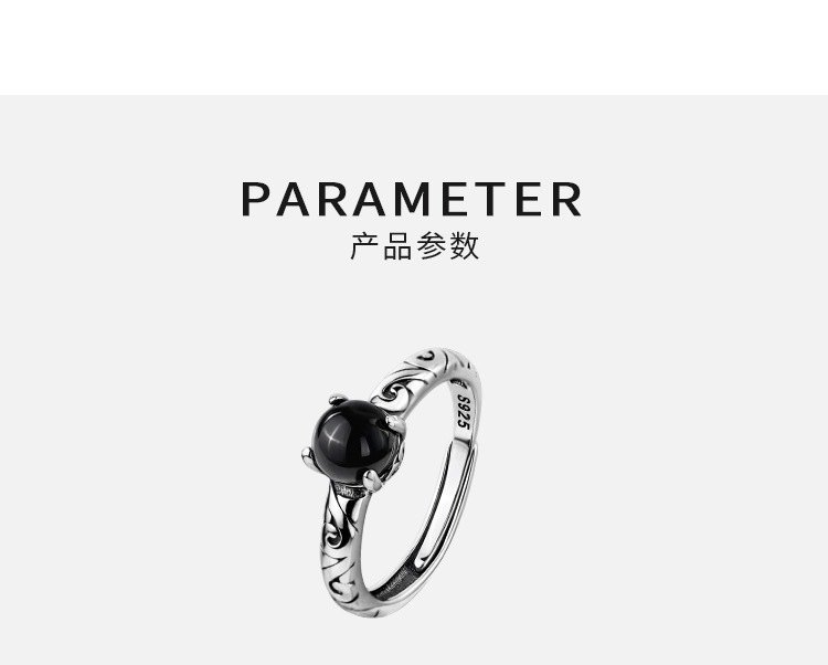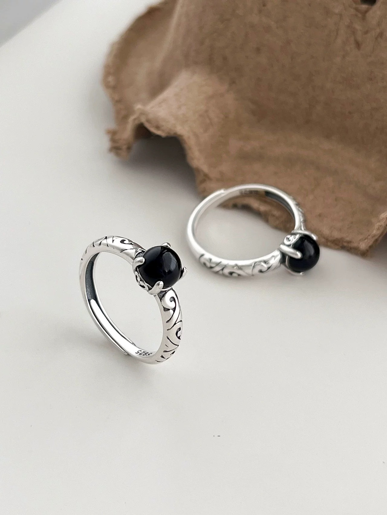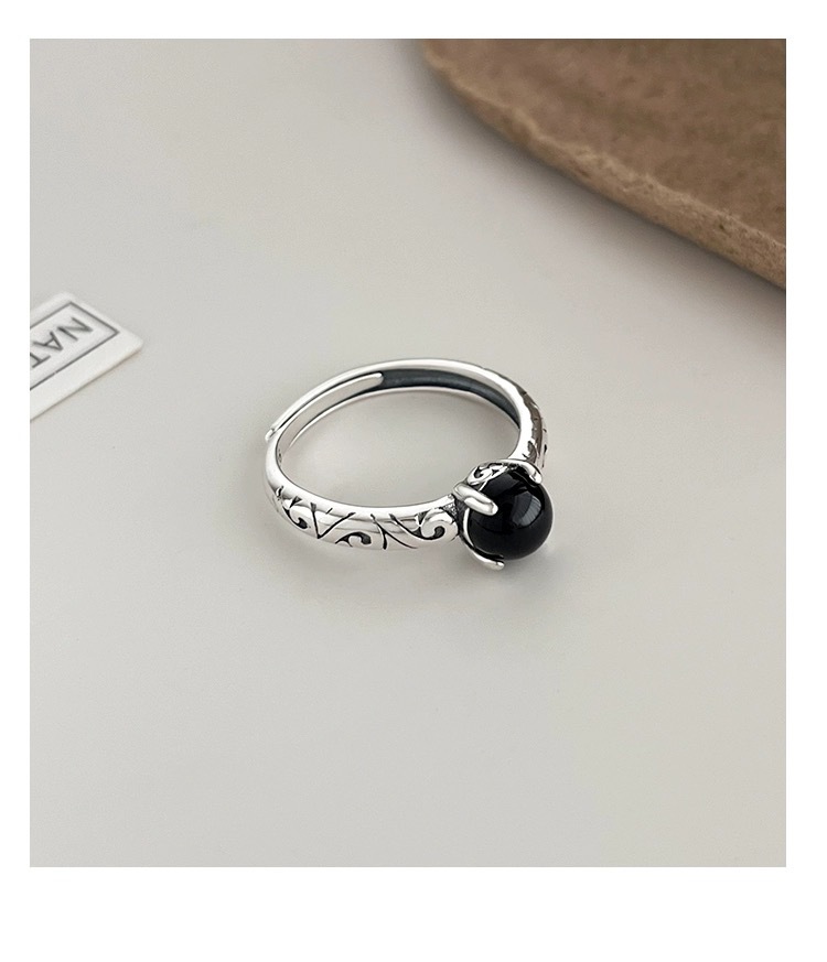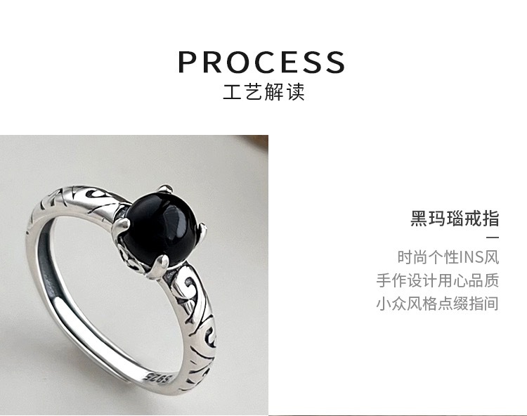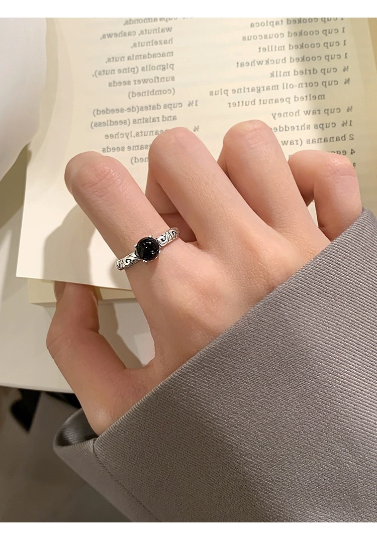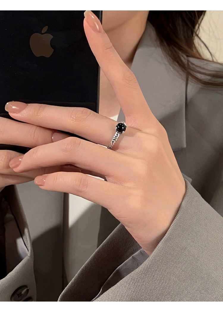Black Onyx Ring Niche High-end Personalized Simple Finger Ring Light Luxury Open Adjustable Ring Ring Women's New Product