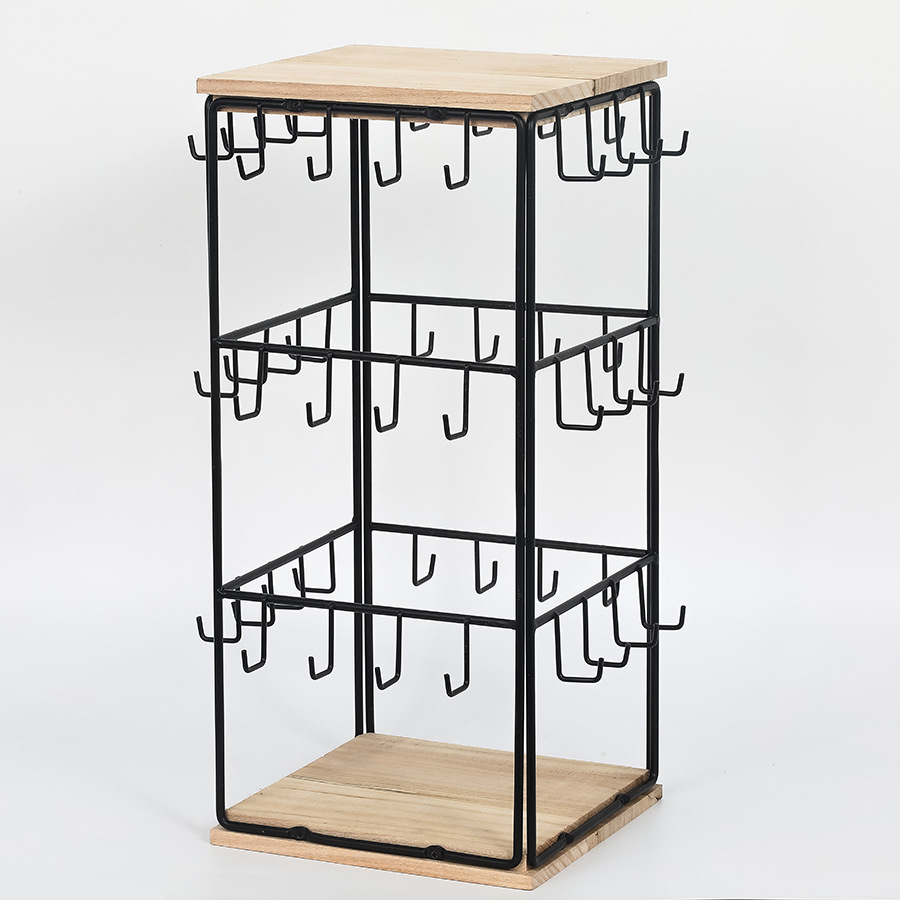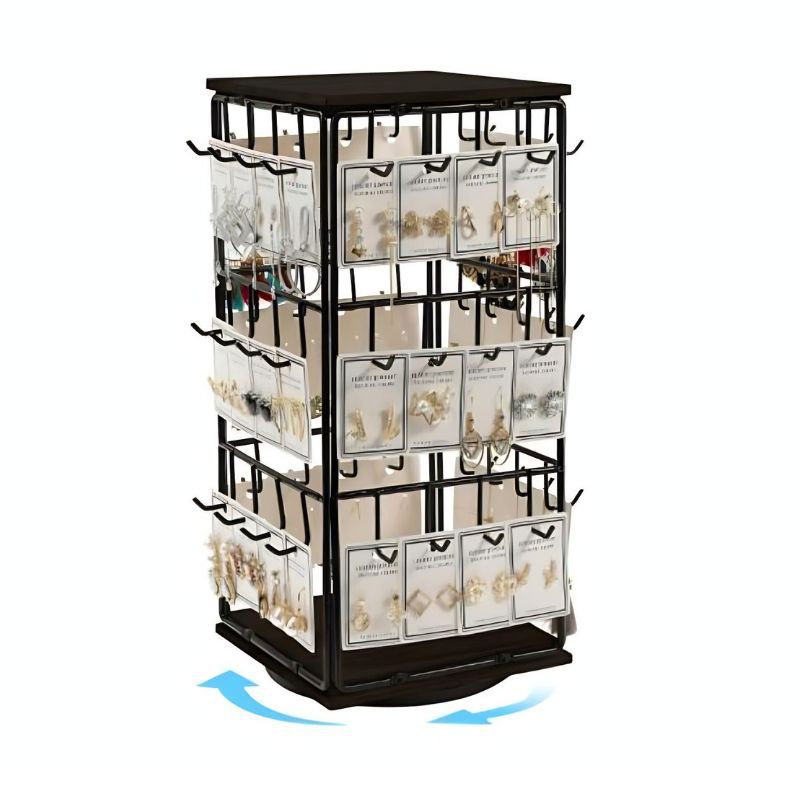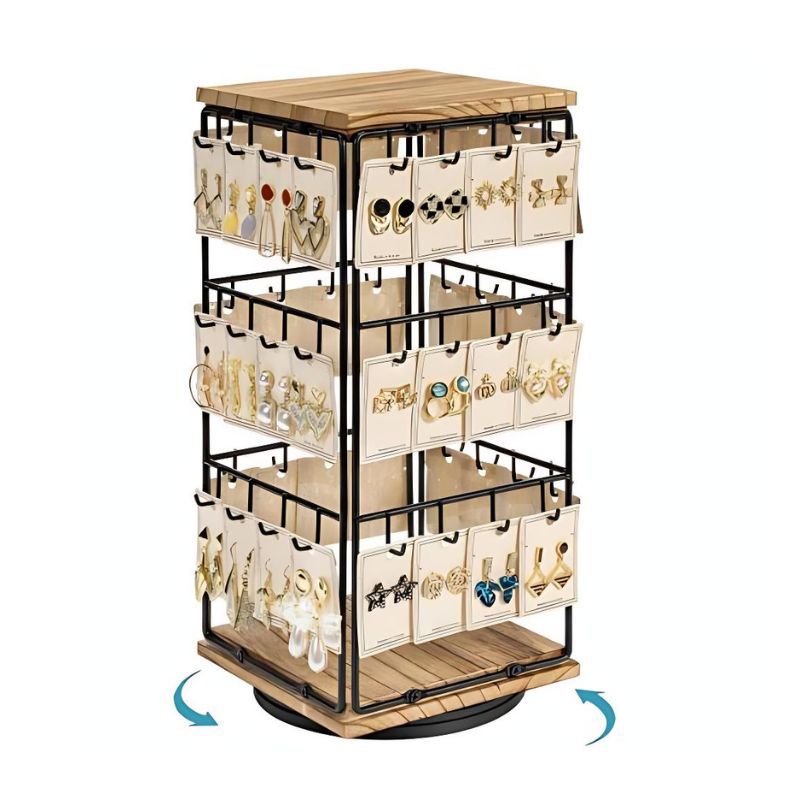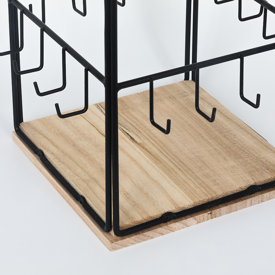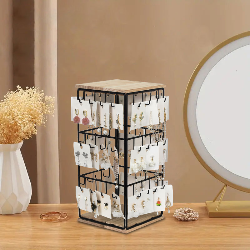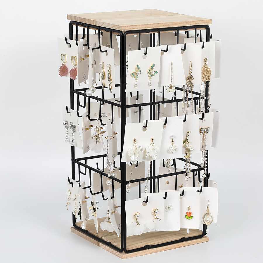 Cross-border Detachable Desktop Four-sided Square Jewelry Rack Wrought Iron Wooden Base Jewelry Earrings Earrings Display Storage Rack
