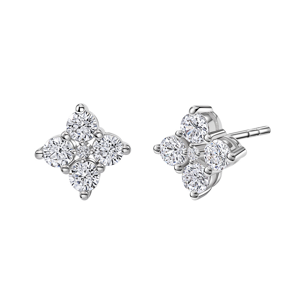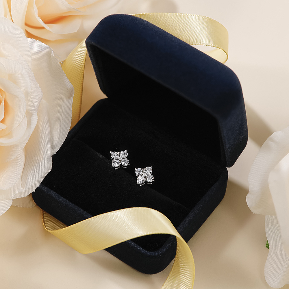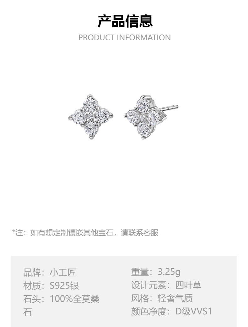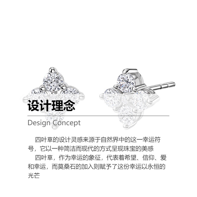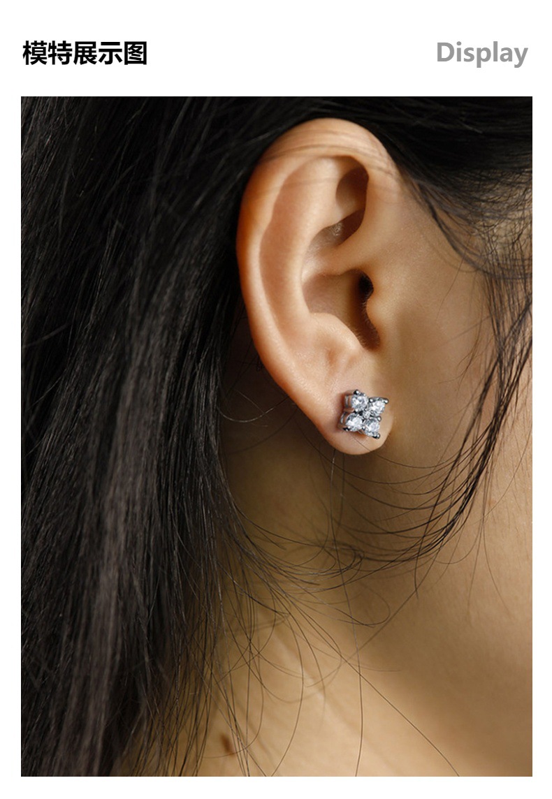 Cross-Border Hot-Selling Four-Leaf Clover S925 Silver Moissanite Stud Earrings for Women, Floral Earrings, Ins-Style Trendy Earrings