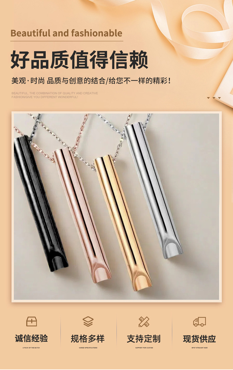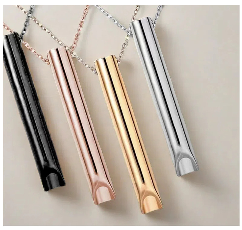 New European and American Cross-border Stainless Steel Solution Breathing Necklace Meditation Decompression Mouth Personalized Whistle Pendant Jewelry Wholesale