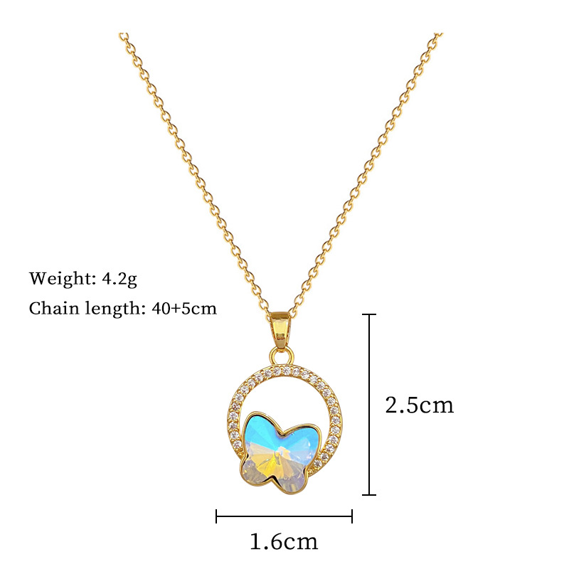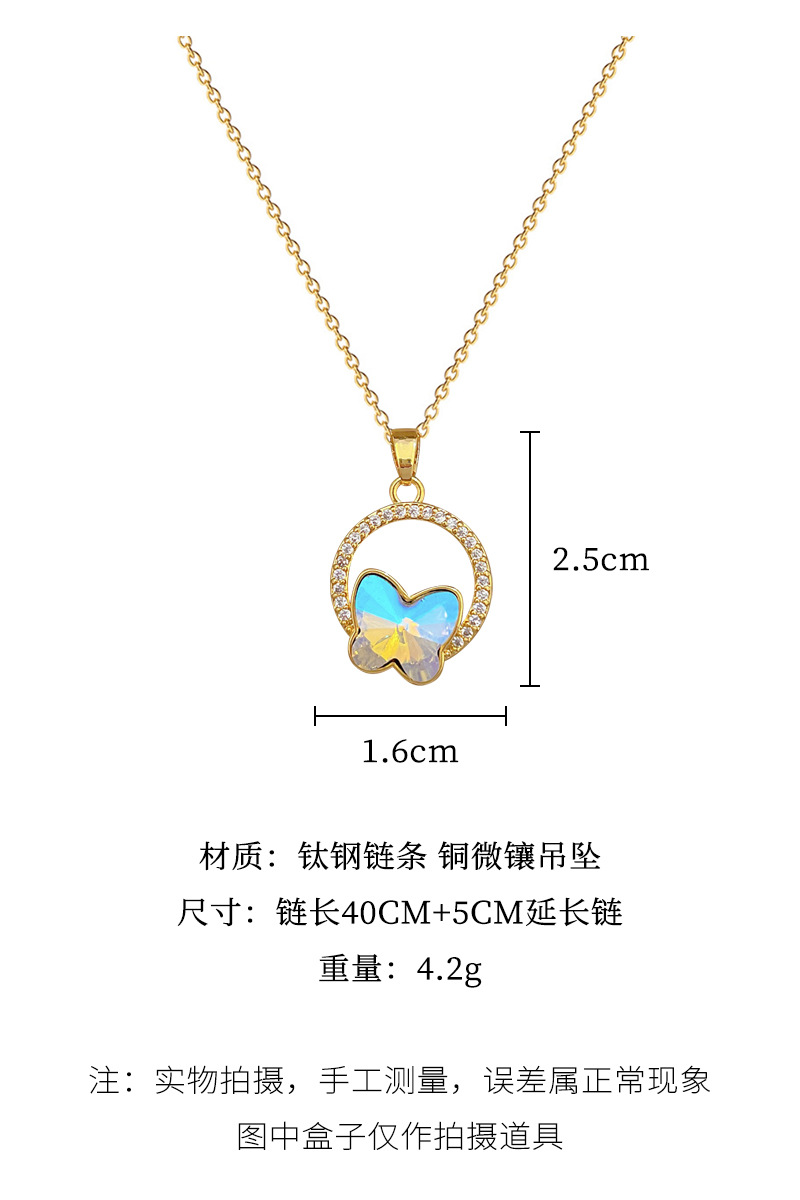 [Titanium Steel] Colorful Ring Butterfly Light Luxury Elegant Gorgeous Diamond Necklace Women's All-match Clavicle Chain Titanium Steel Chain