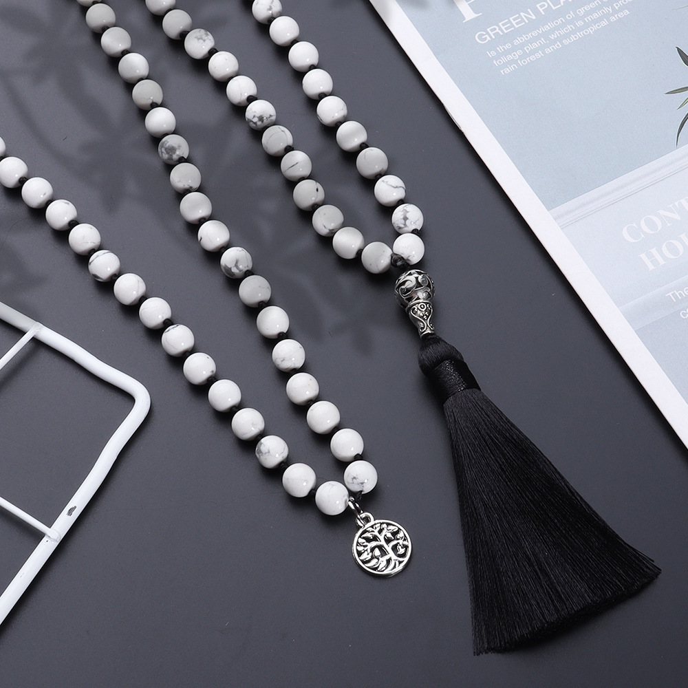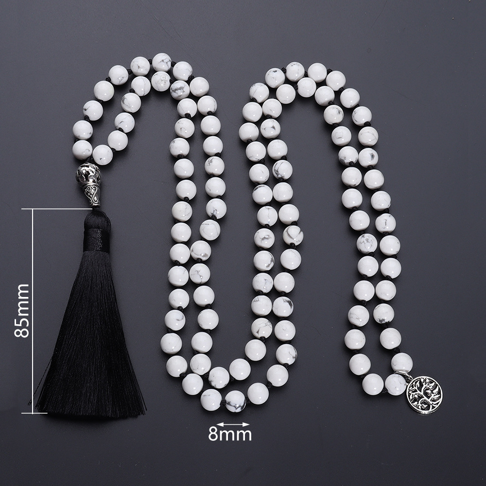 Color: 108 8mm natural white pine knotted necklace & tee (black thread)
