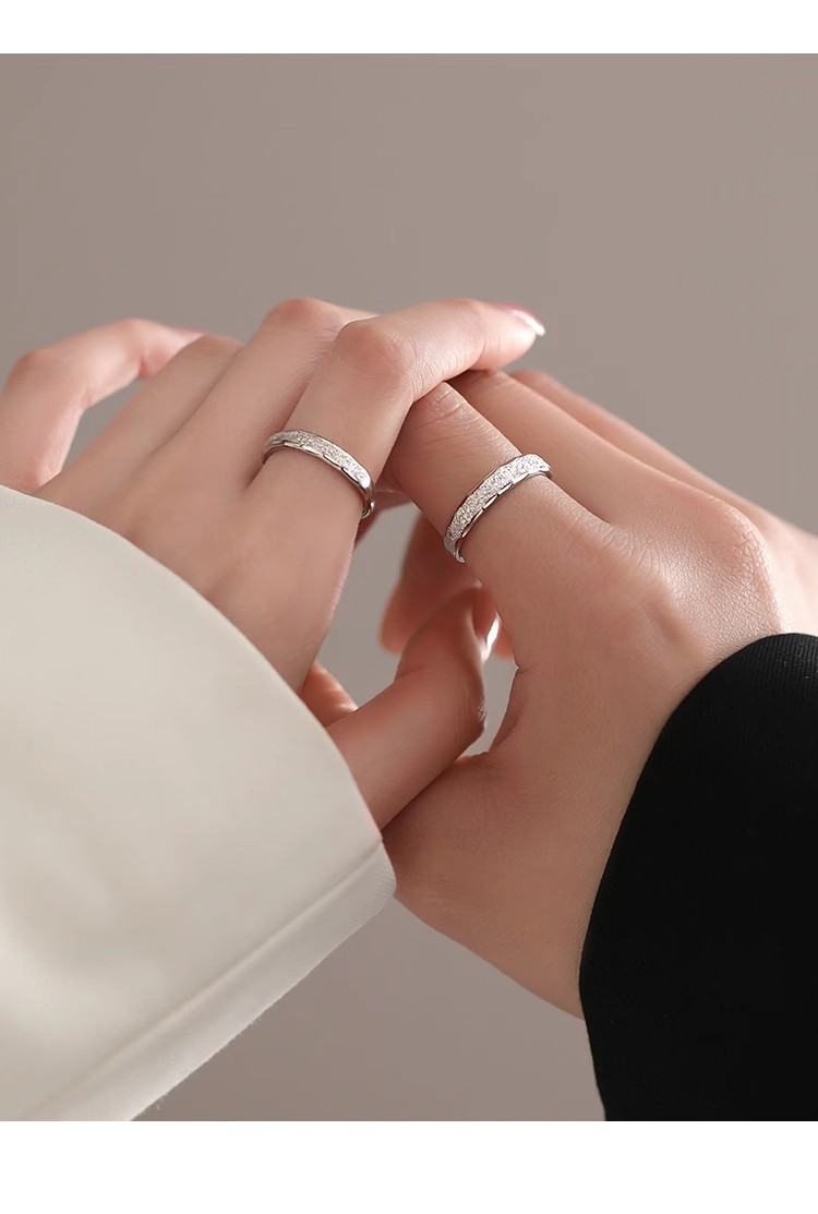 S999 Sterling Silver Romantic Galaxy Couple Ring Scrub Ring for Men and Women A Pair of Silver Plain Ring Niche Ring Wholesale