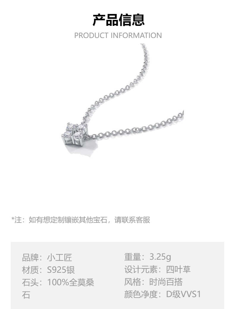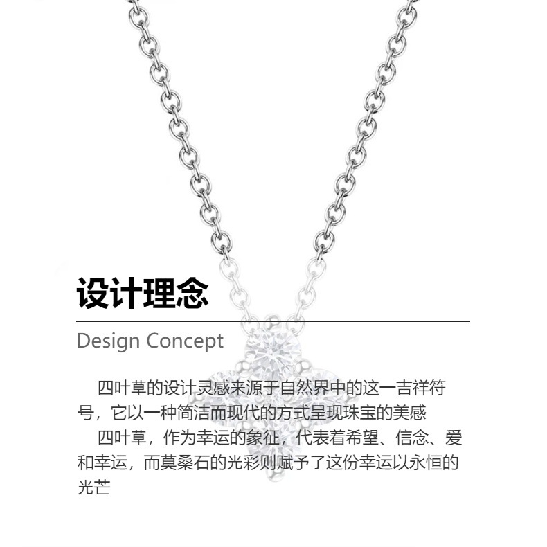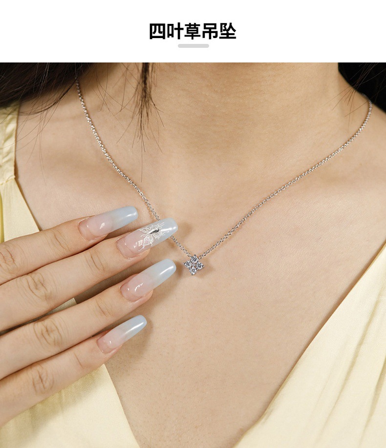 Cross-border Explosions Moissanite Four-leaf Clover Necklace Women's s925 Sterling Silver Small Pendant Fashion All-match Flower Clavicle Chain