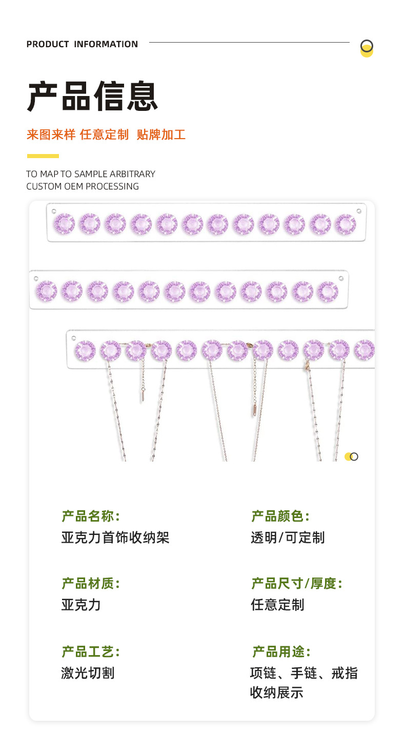 Acrylic Necklace Storage Rack Custom Room Hanging Wall Bracelet Jewelry Display Rack Transparent Acrylic Jewelry Rack