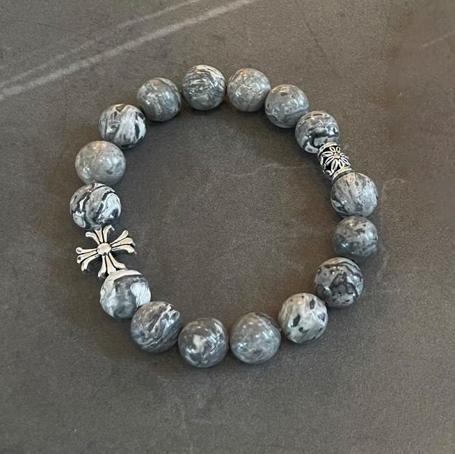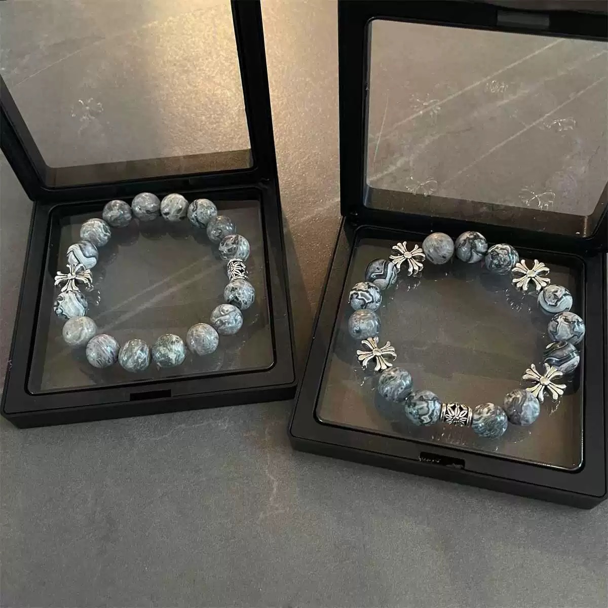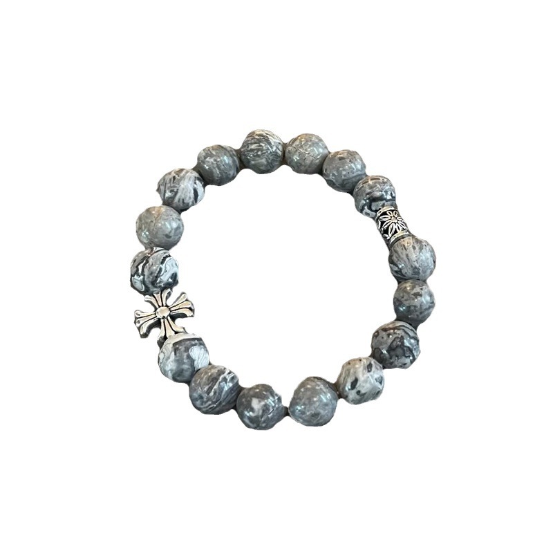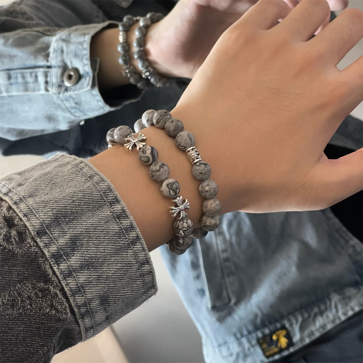 Personality Map Stone Cruciferous Beaded Bracelet Men's Retro Joker Couple Bracelet Niche High-end Bracelet Wholesale