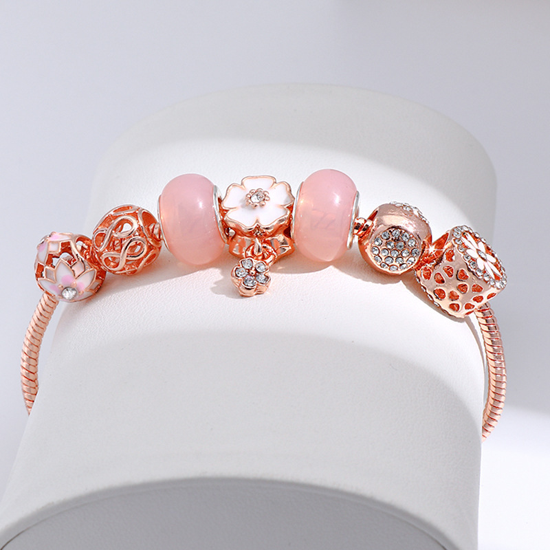 European and American Cross-border Creative Design Rose Gold Copper Micro-inlaid Zircon Copper Plated Real Gold Niche All-match Panjia Bracelet Women
