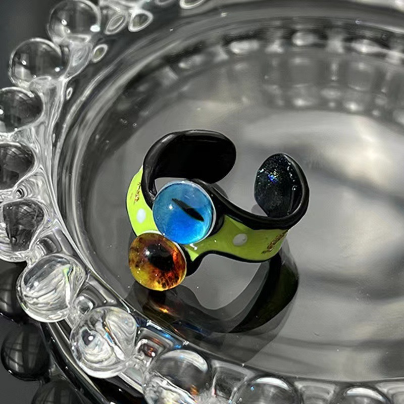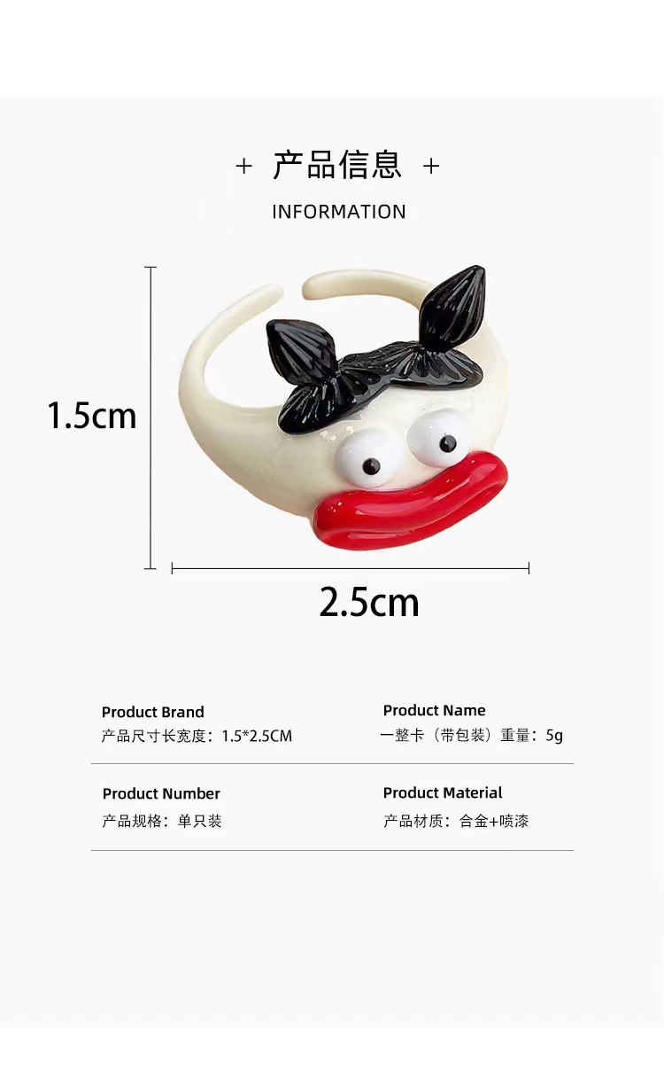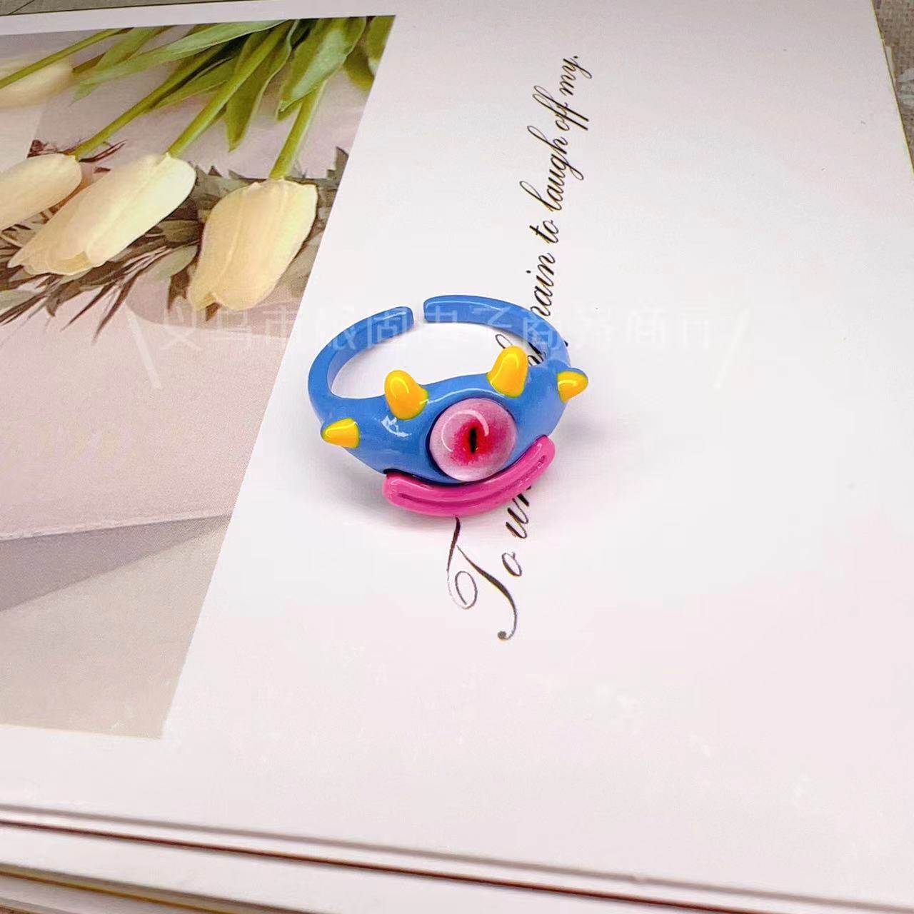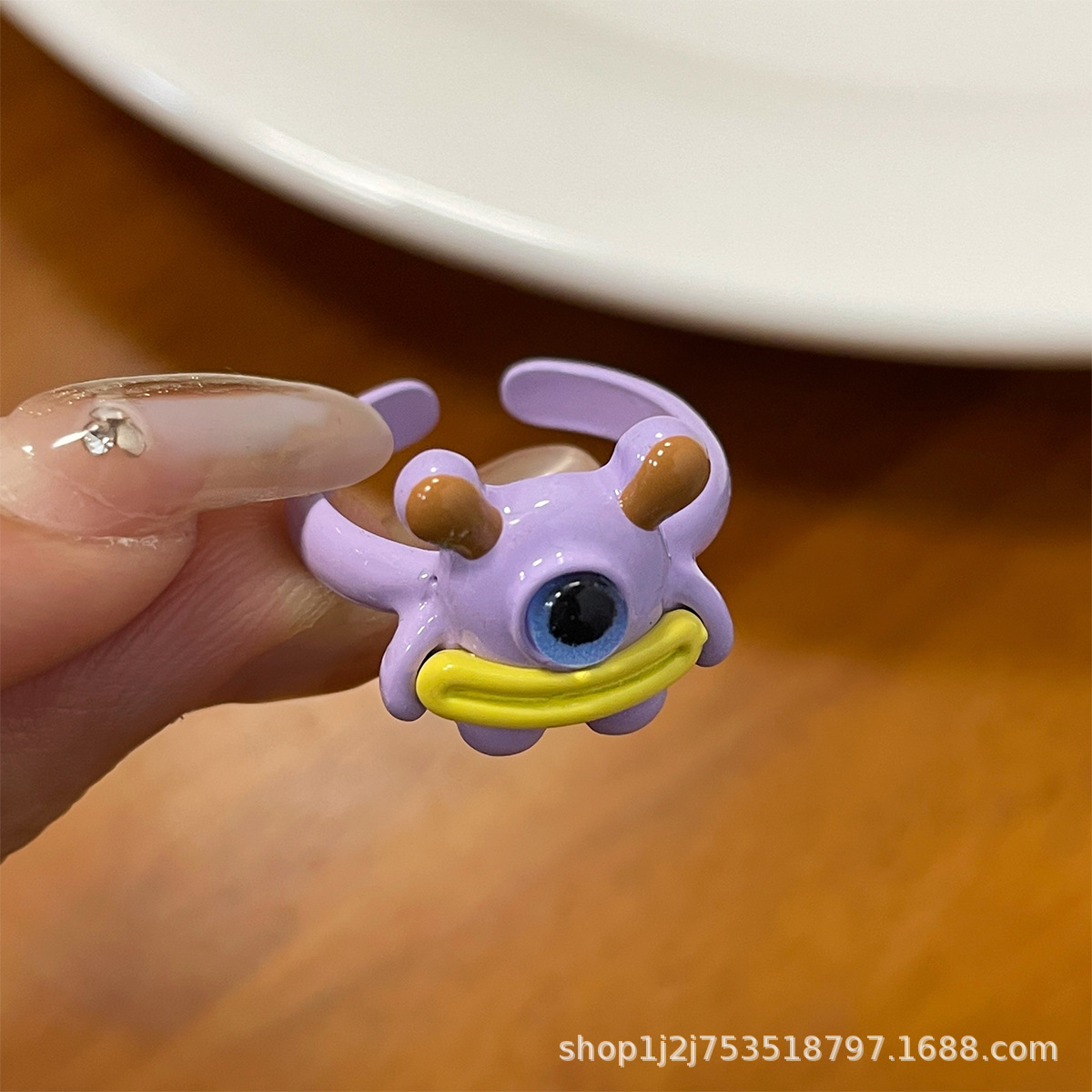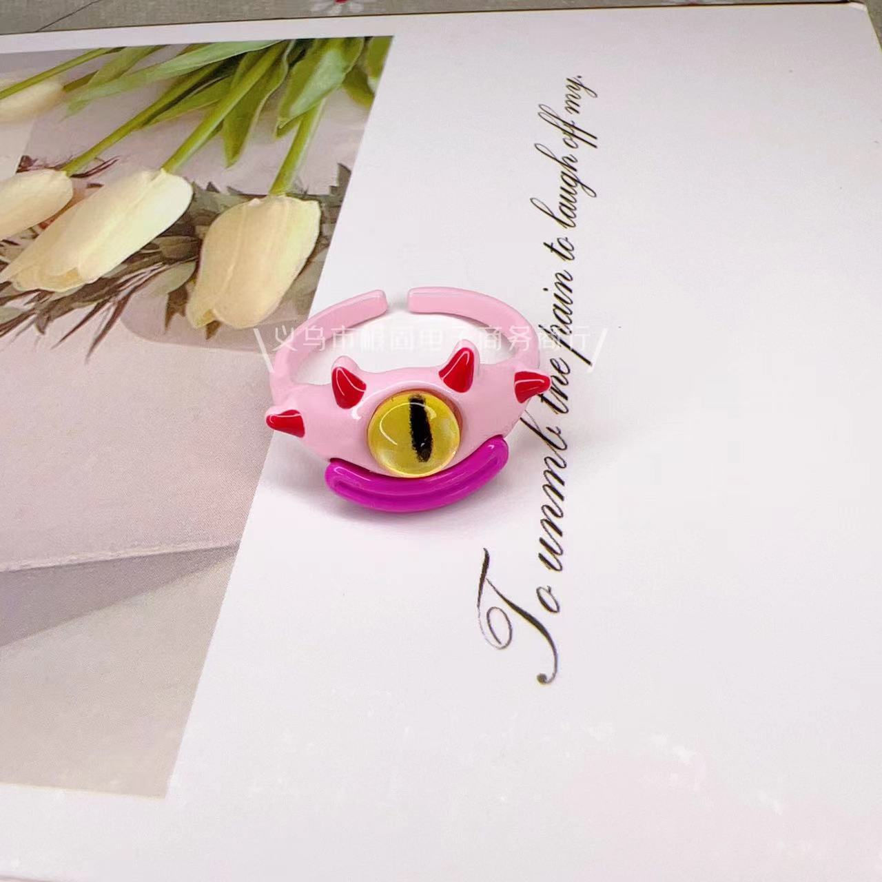 Cute and Ugly Cartoon Oil Dripping Open Ring Personalized Sausage Mouth Funny Little Monster Ring Student Couple Gift