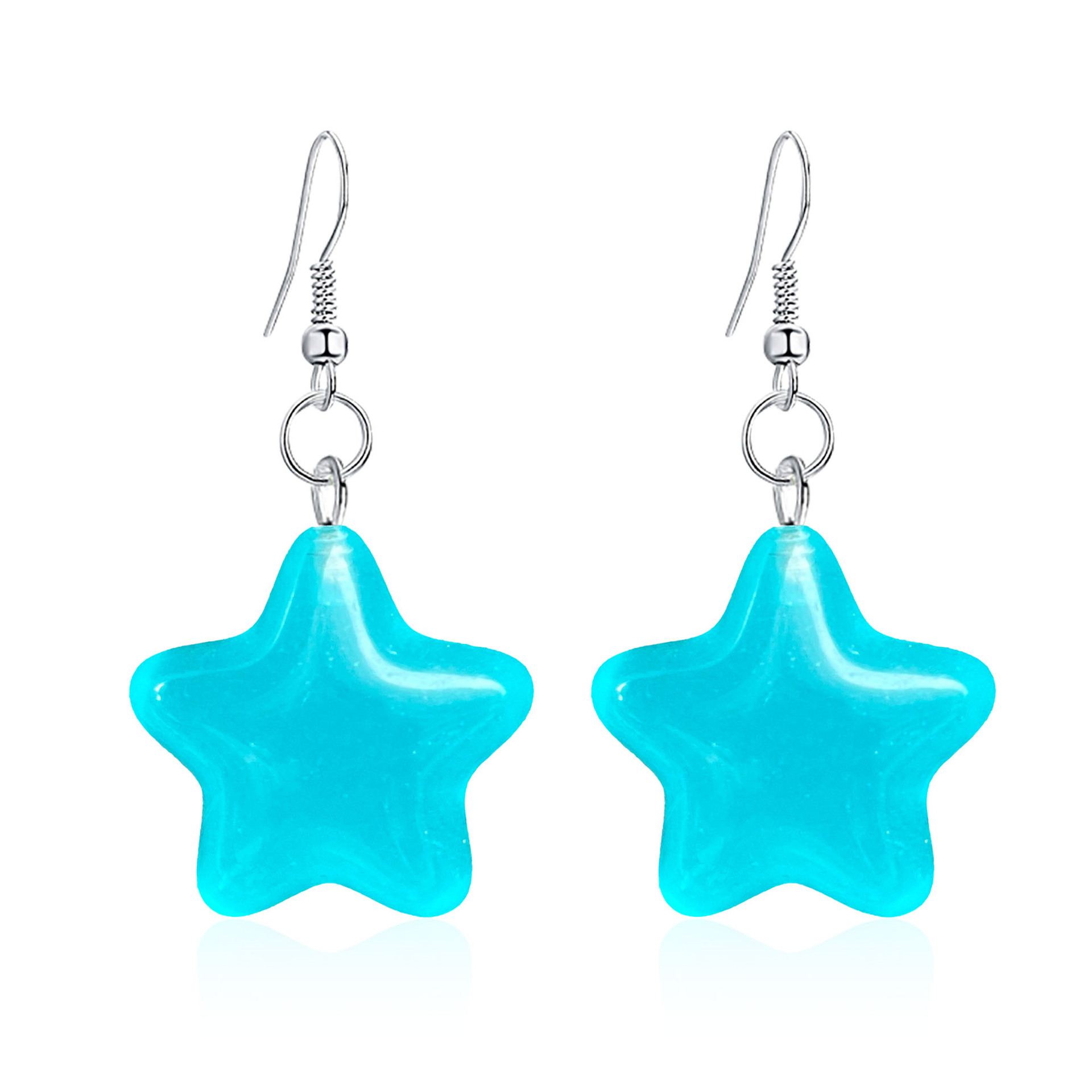 Luminous Jelly Candy Color Five-pointed Star Earrings Cute Creative Color Three-dimensional Star Earrings Ear Jewelry for Women
