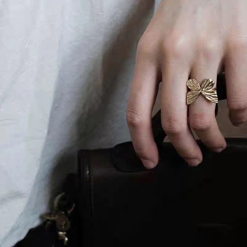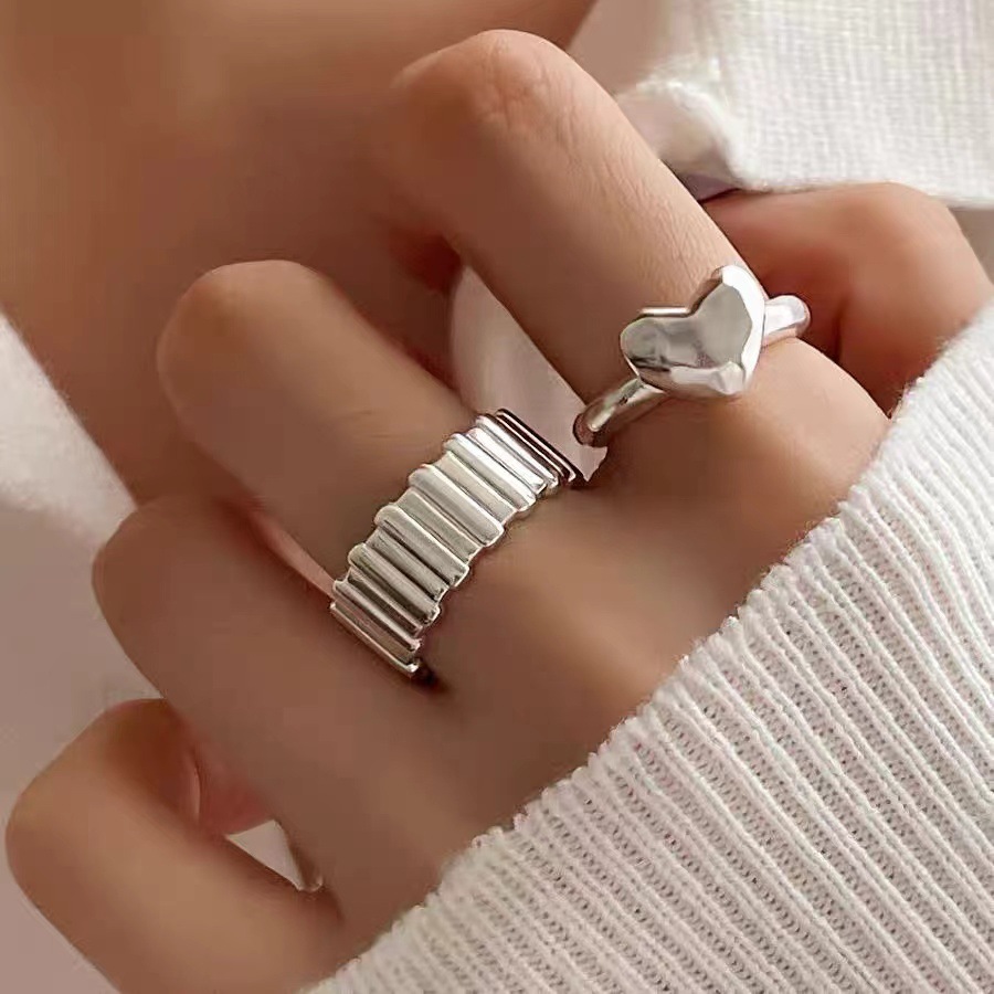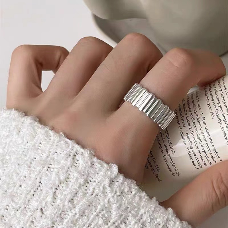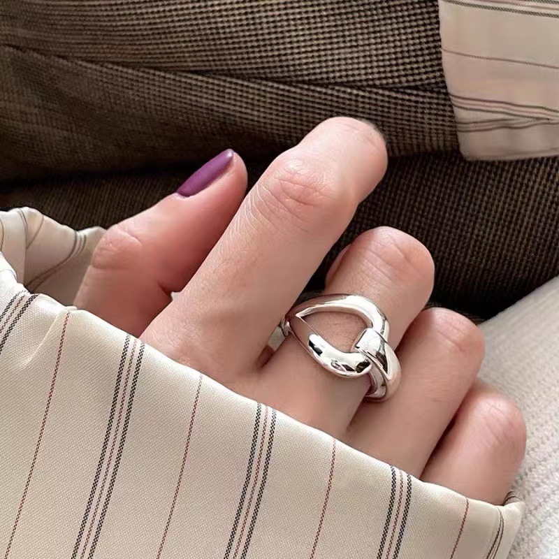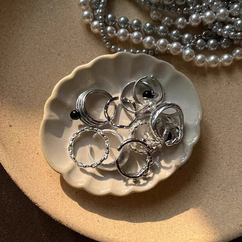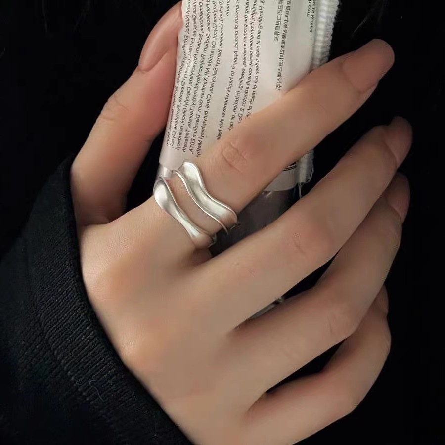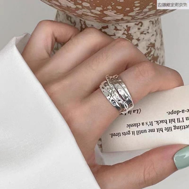 Light luxury heavy industry plain ring black agate ring women's niche retro high-end sense opening adjustable ring wholesale jewelry