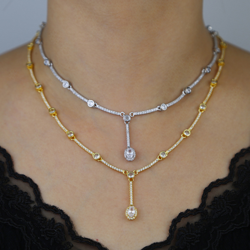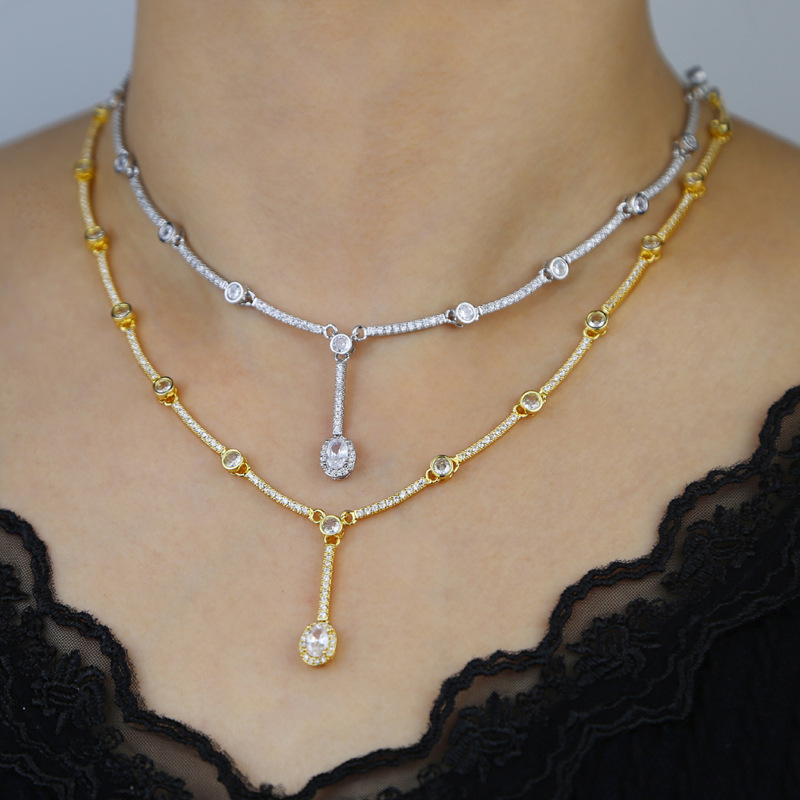 Cross-border European and American New Necklace Personalized Women's Zircon Necklace Shining Zircon High-end Quality Jewelry Trendy Accessories