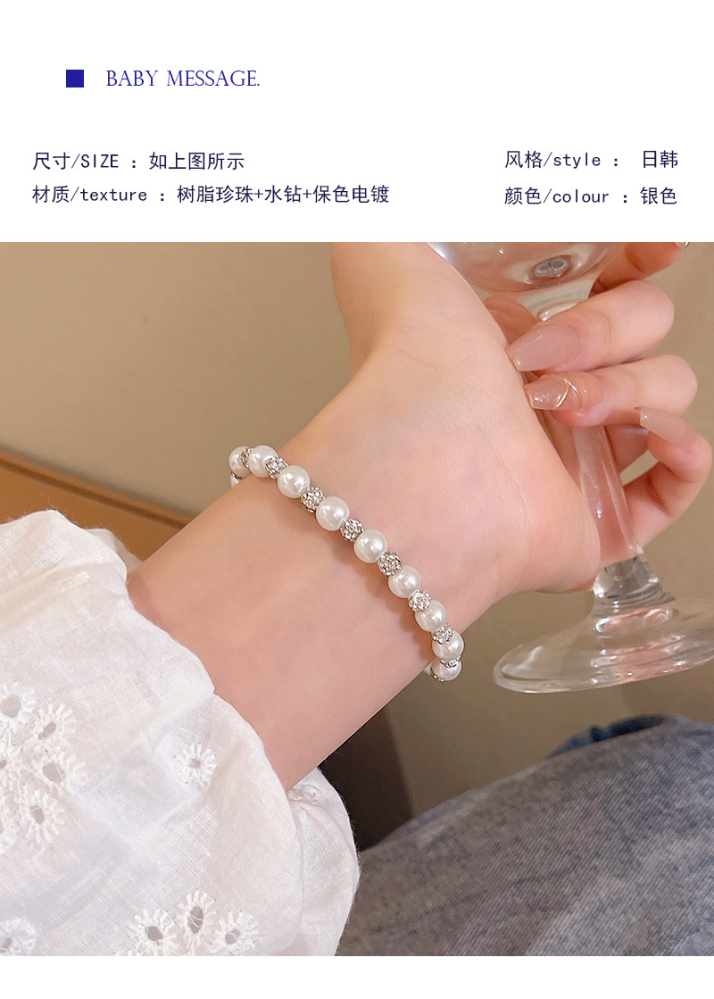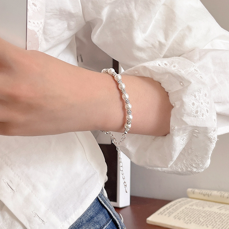 Gimsophila Imitation Pearl Silver Beaded Bracelet Women's Light Luxury High-end Sense Personalized Fresh Style Student's Best Friend Bracelet