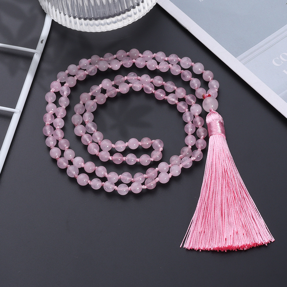 Color: 108 8mm Pink Crystal Knot Necklace & Tee