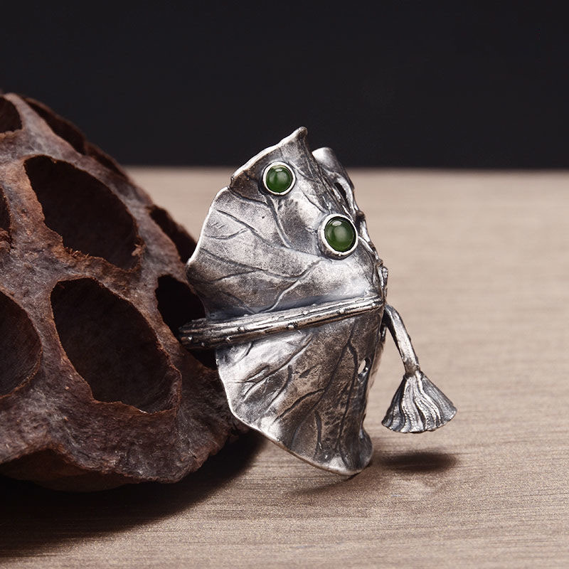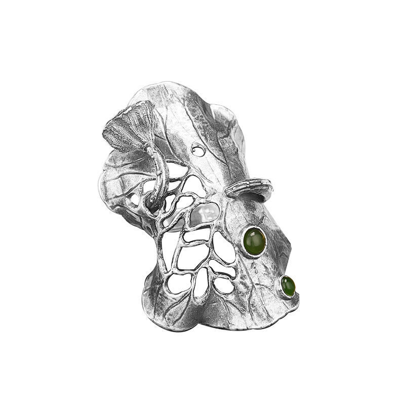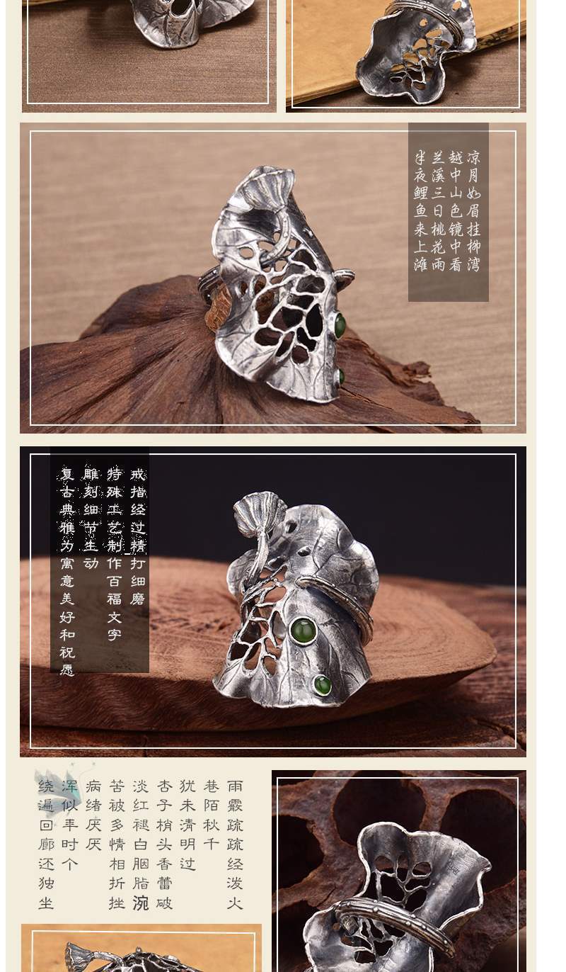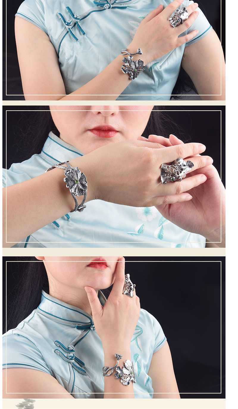 Personalized Retro Versatile Ethnic Style Lotus Pond Moonlight Elegant Opening Adjustable Ruffle Ring for Women