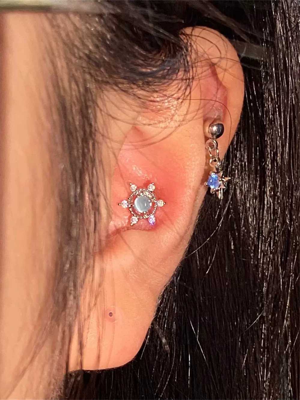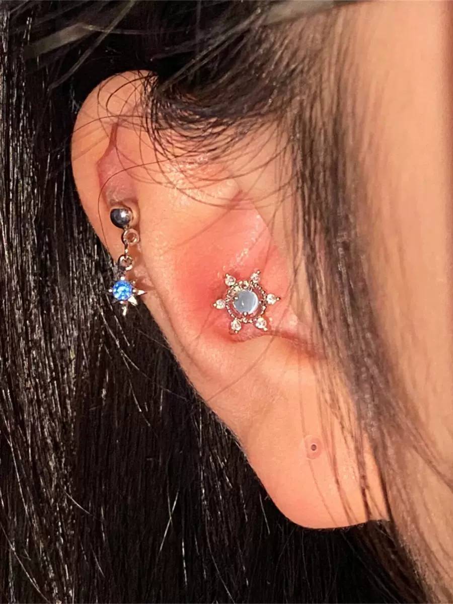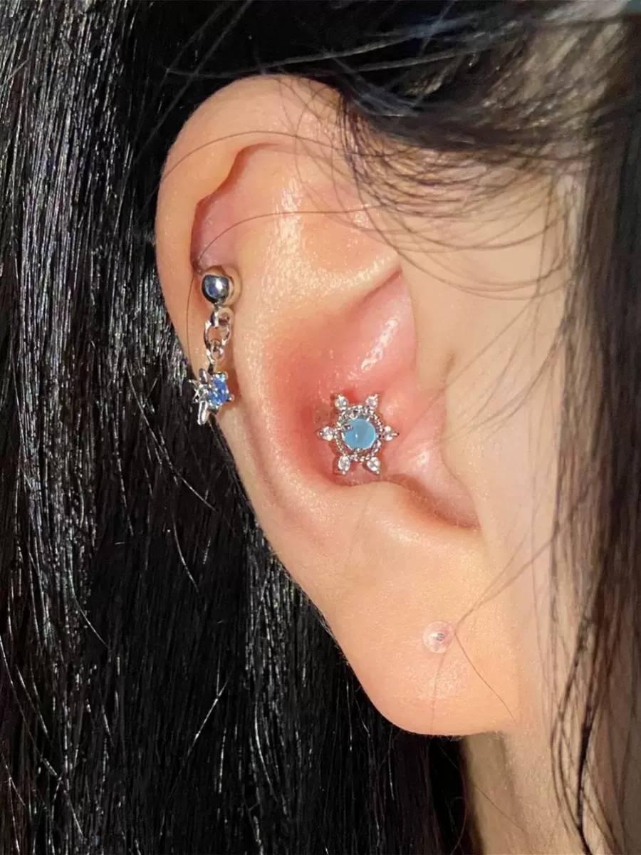 Fixoofix Blue Star Studded Tassel Ear Bone Stud Zircon High-End Earrings Sweet Cool Spicy Girl Earrings