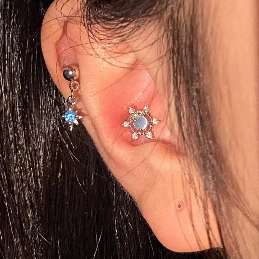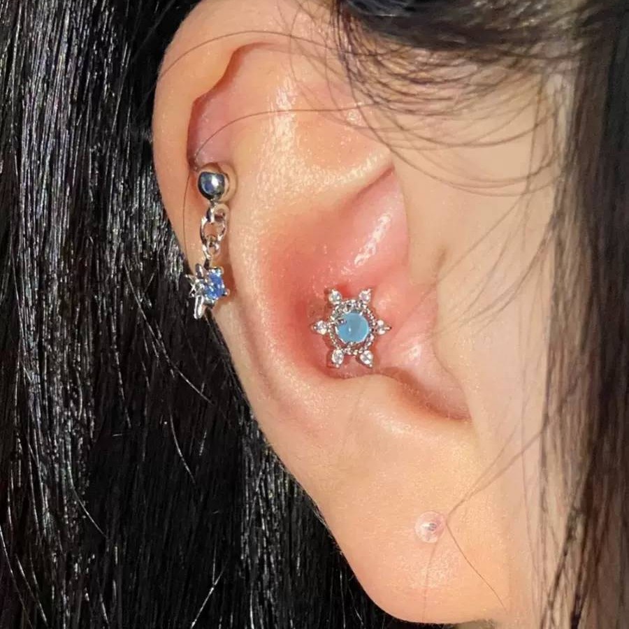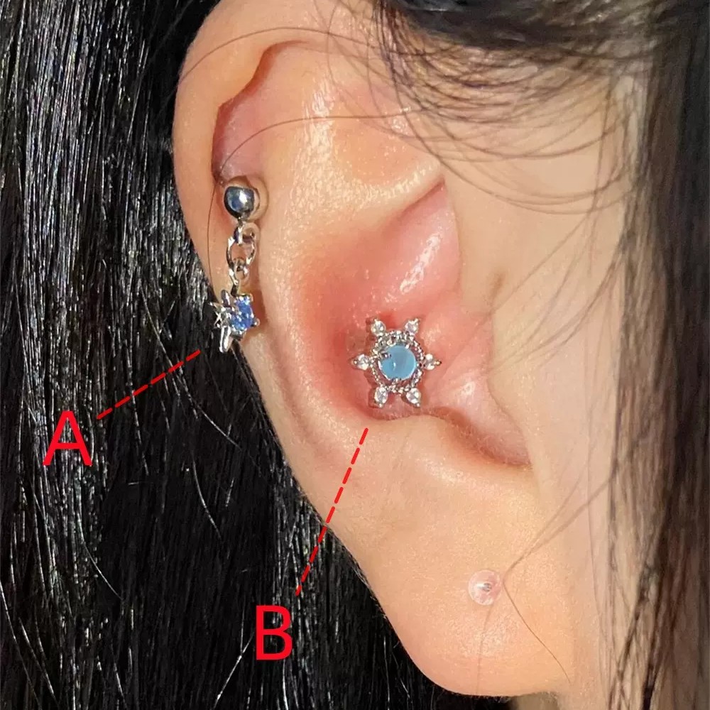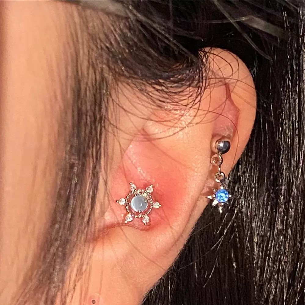 Fixoofix Blue Star Studded Tassel Ear Bone Stud Zircon High-End Earrings Sweet Cool Spicy Girl Earrings