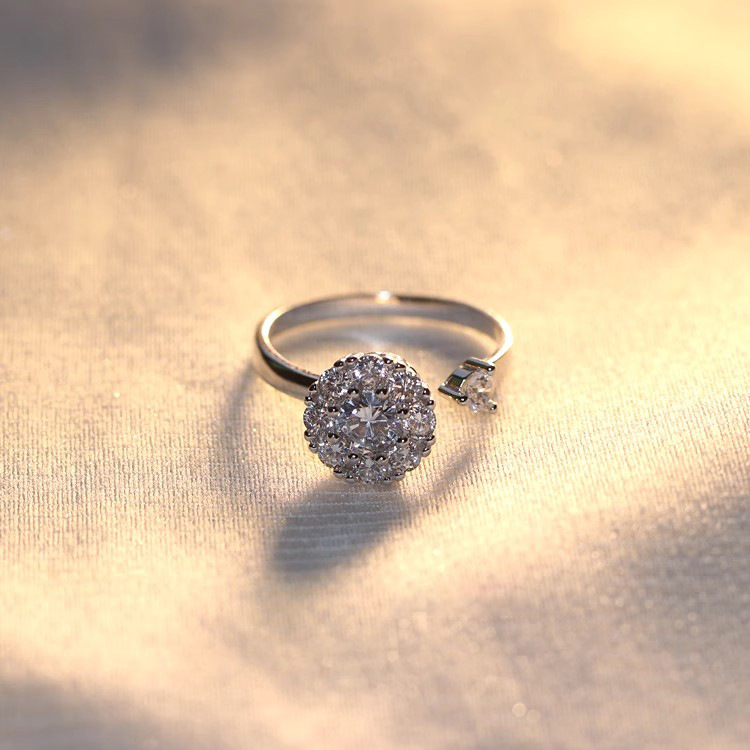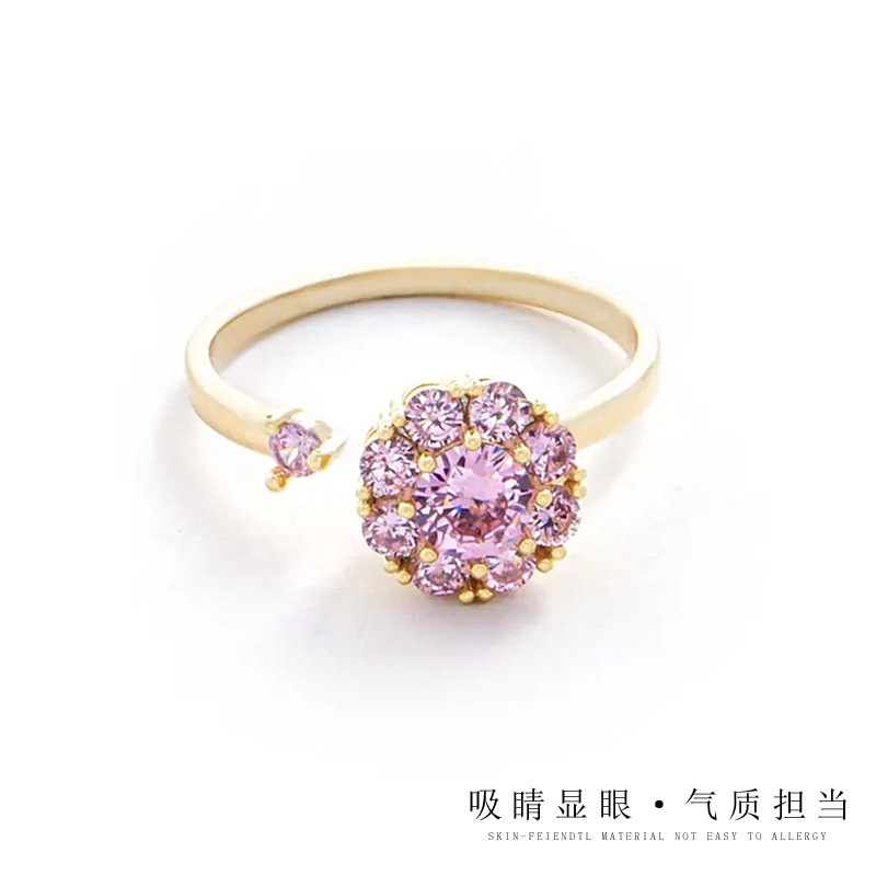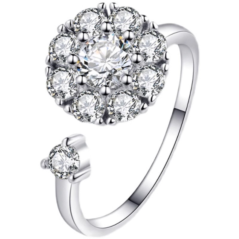 Flower Rotatable Ring Women's Ins Style Niche High-end Light Luxury Diamond Ring Summer Simple Open Ring Ring for Girlfriends