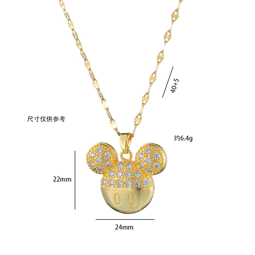 Fashion Cute Cartoon Light Luxury Style Shiny Diamond Mickey Mouse Head Pendant Necklace Daily Commuter Jewelry