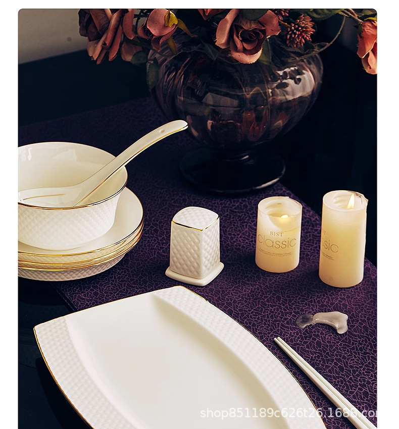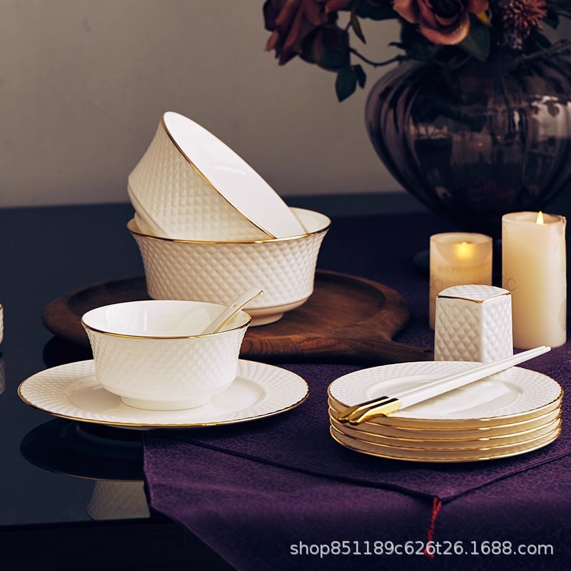 Color: 6inch diamond rice bowl with gold edge