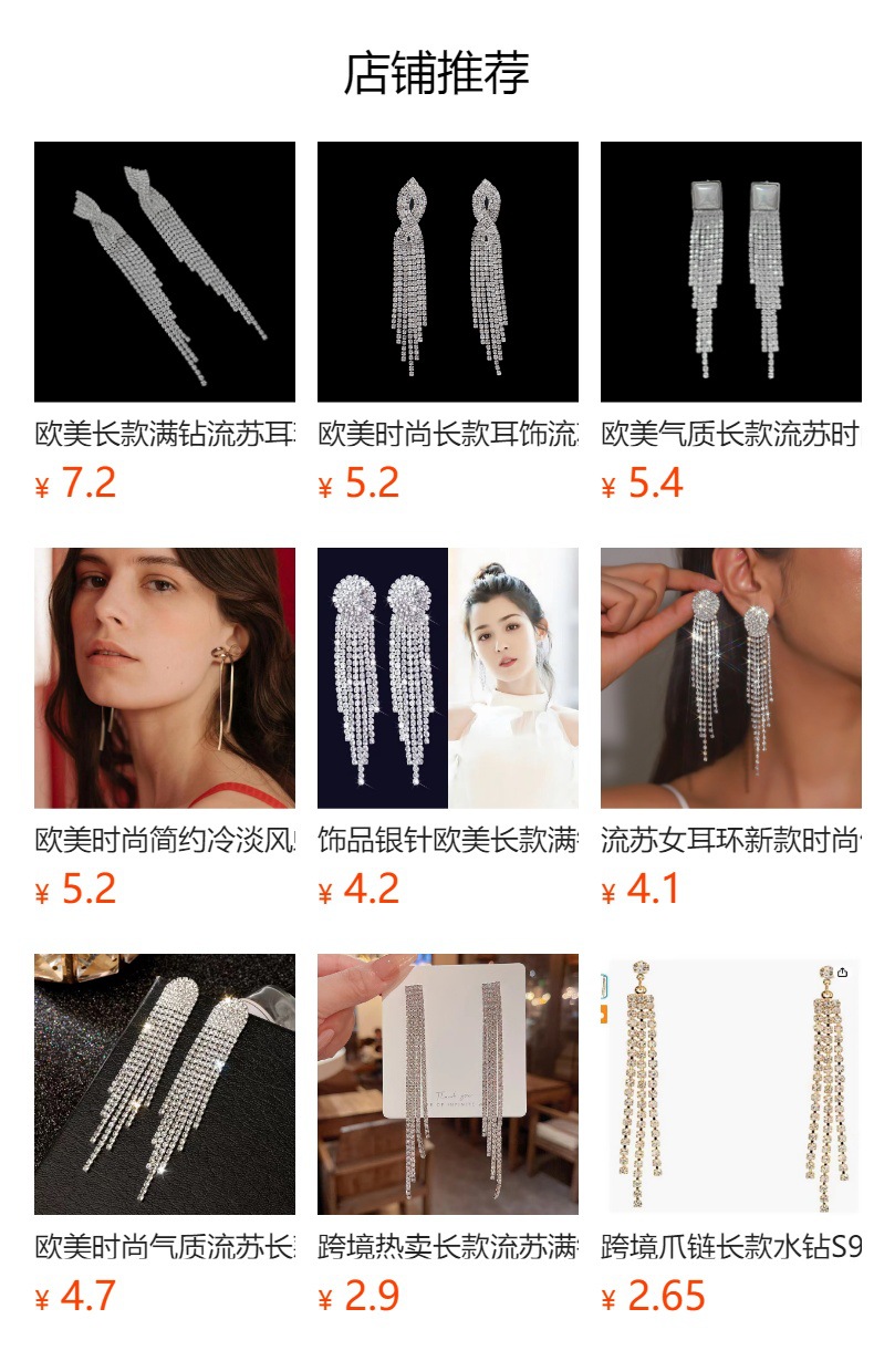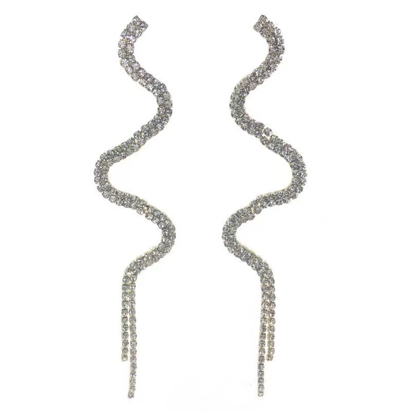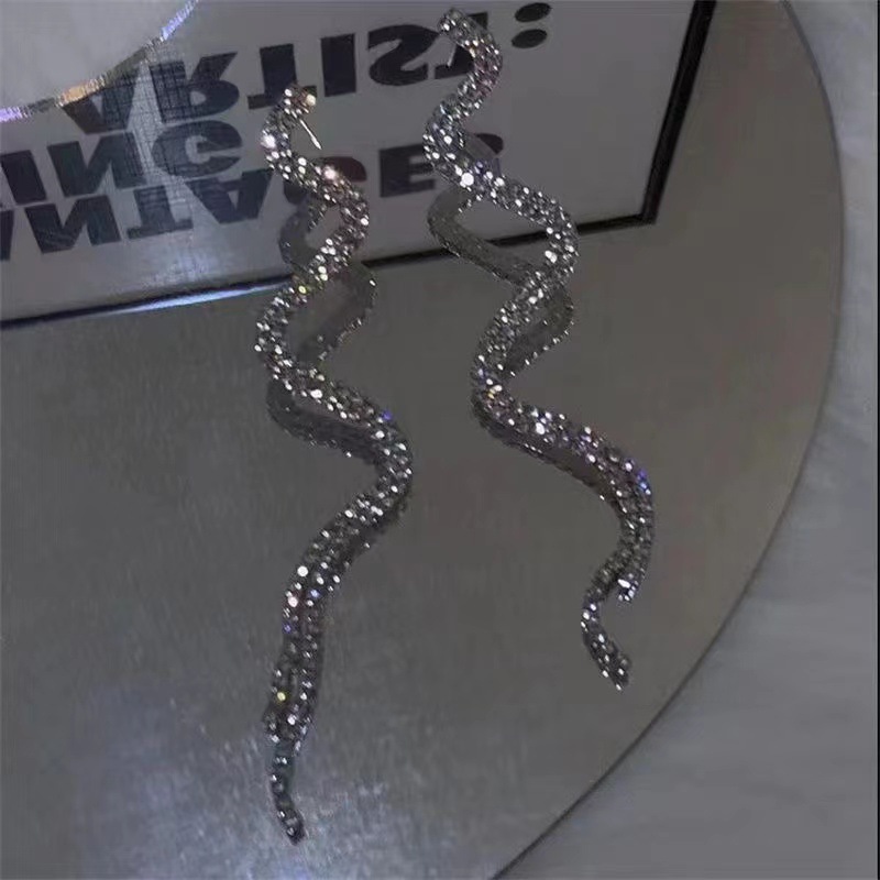 European and American tassel temperament net red women's earrings long full diamond irregular S-shaped earrings slim earrings Joker wholesale