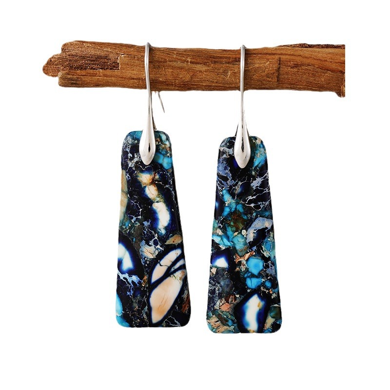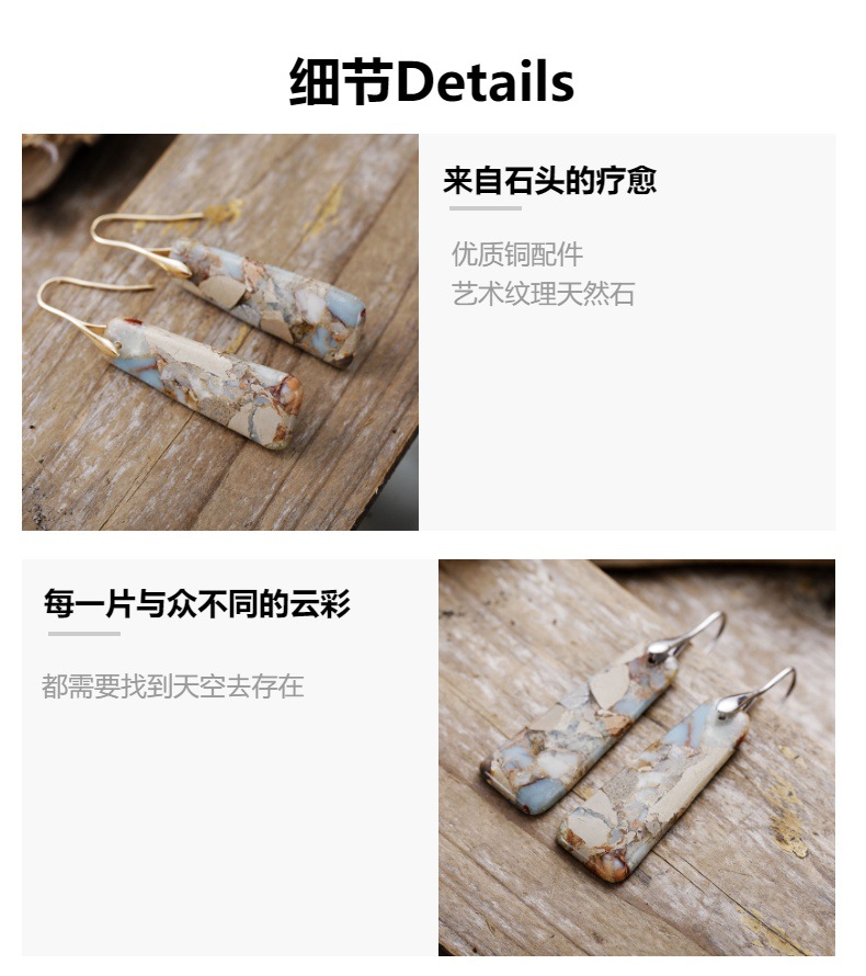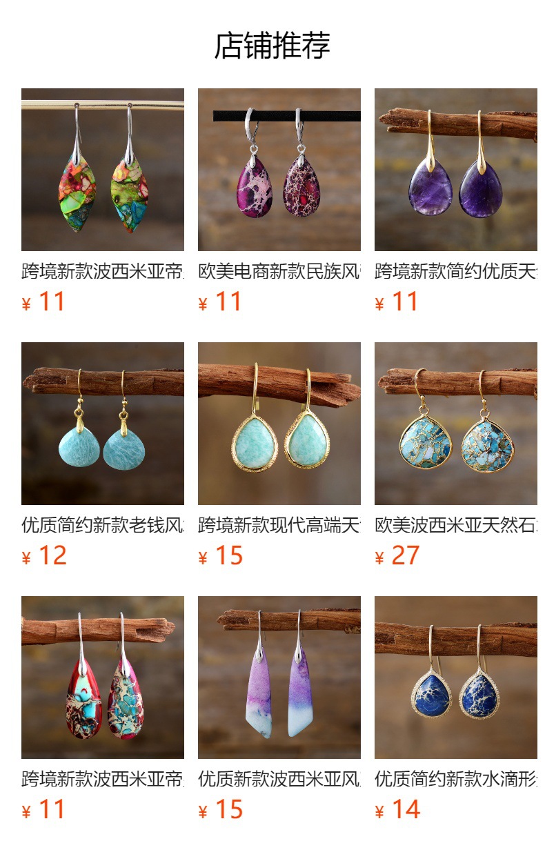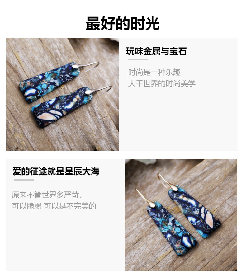 新款民族风天然石水滴耳坠耳钉轻奢欧美设计师饰品