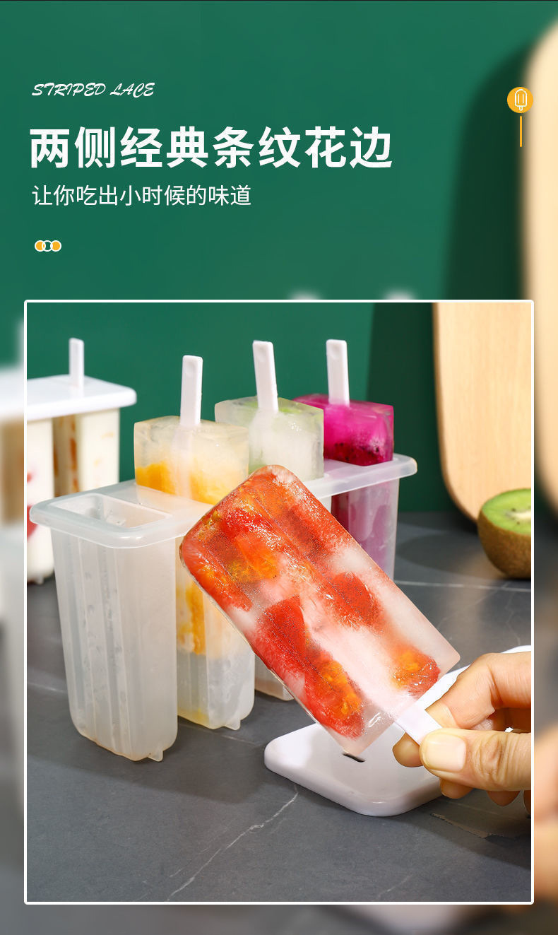 4 Even Old Popsicle Mold with Cover Household Children's Cute Popsicle Ice Cream Mold DIY Homemade Ice Cream Sorbet Mold