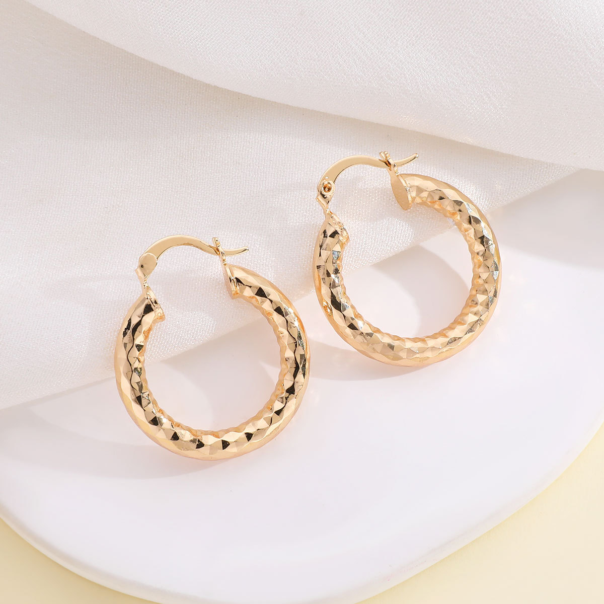Cross-Border Exclusive Supply of European and American Style Retro Geometric Hoop Earrings, 18K Gold Earrings, High-End Women's Jewelry Wholesale, French Style