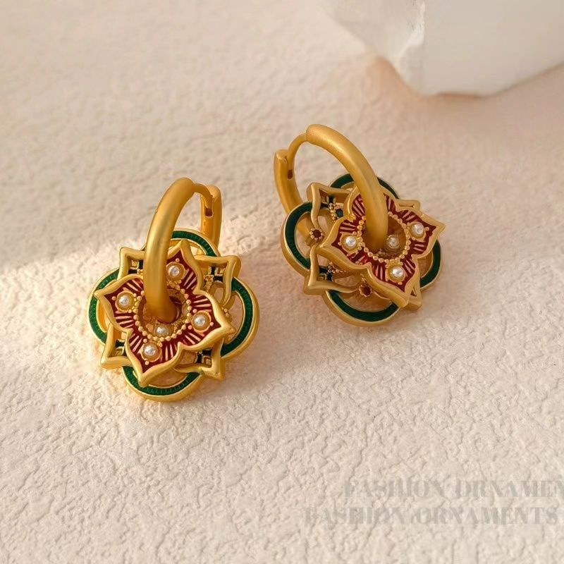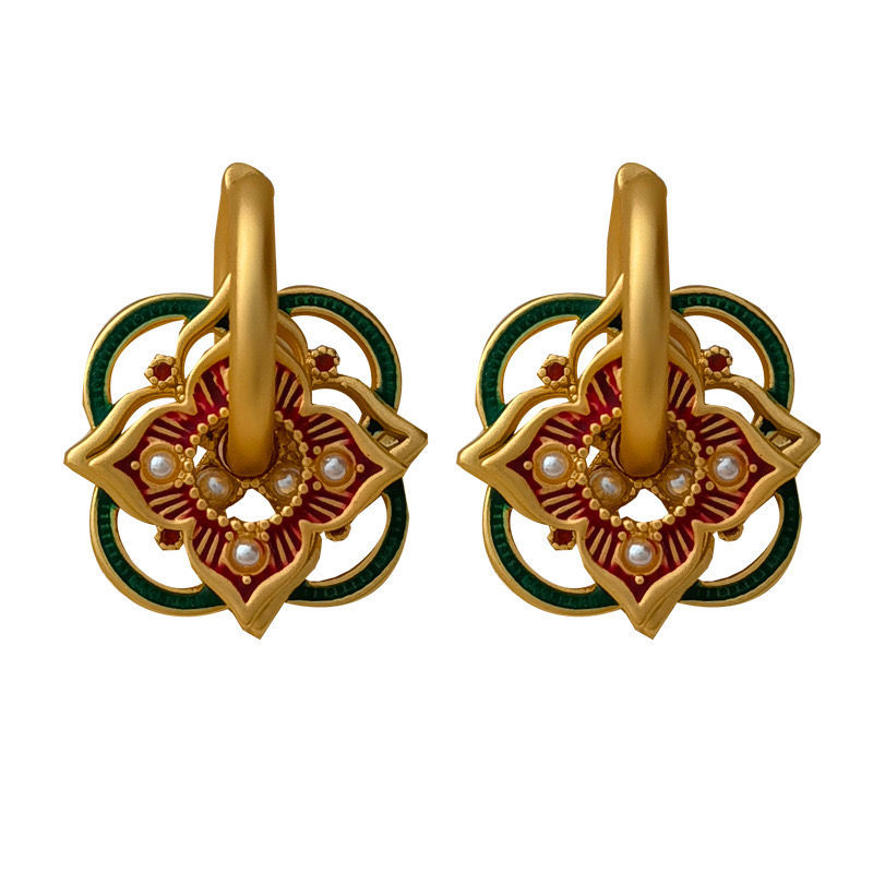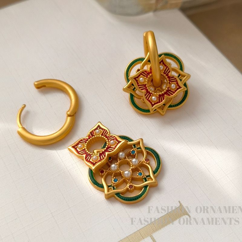 Original national tide retro court style niche design earrings personality hollow painted earrings a multi-ear jewelry