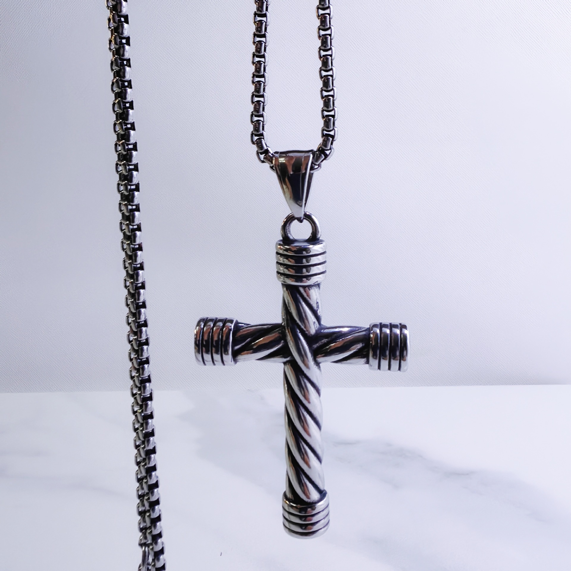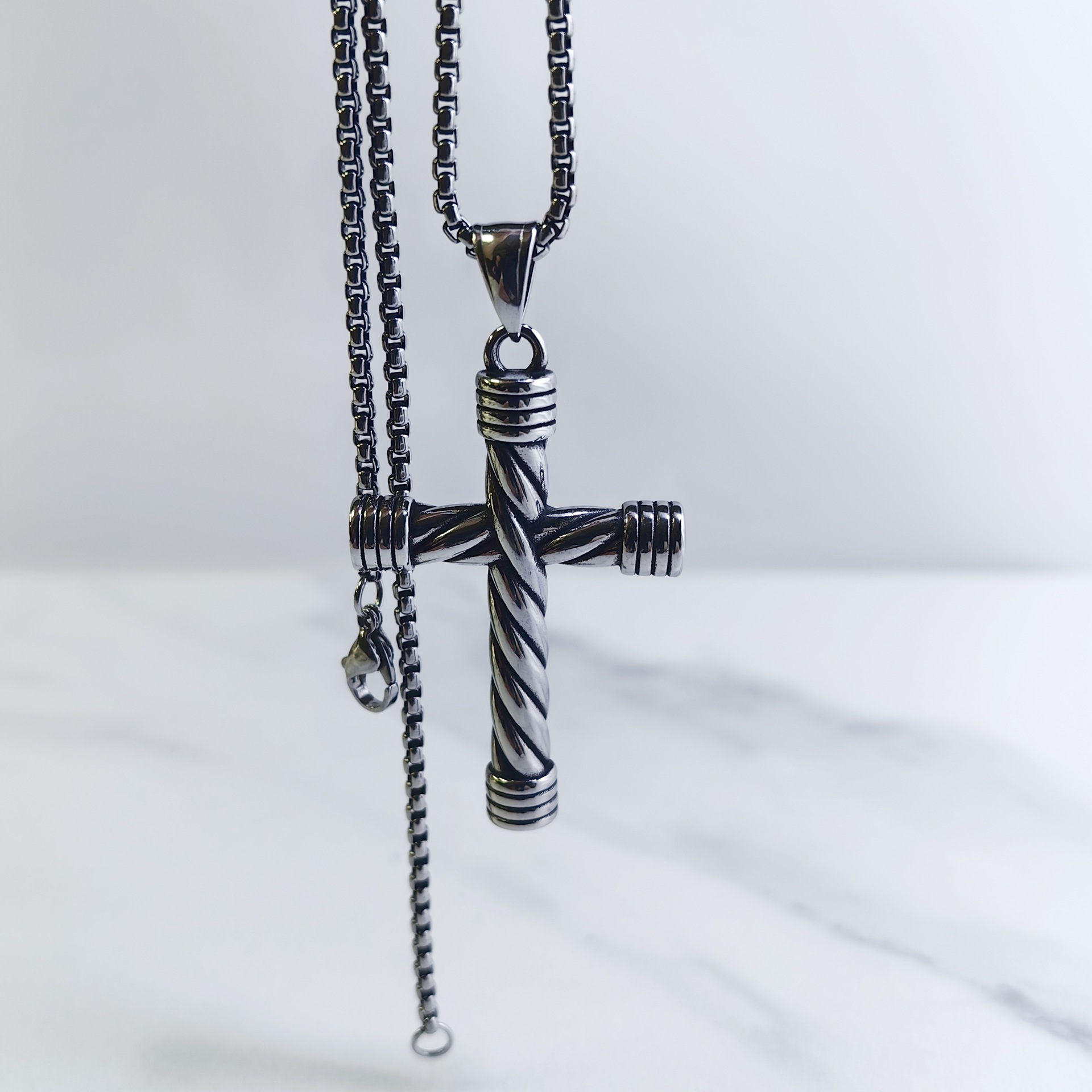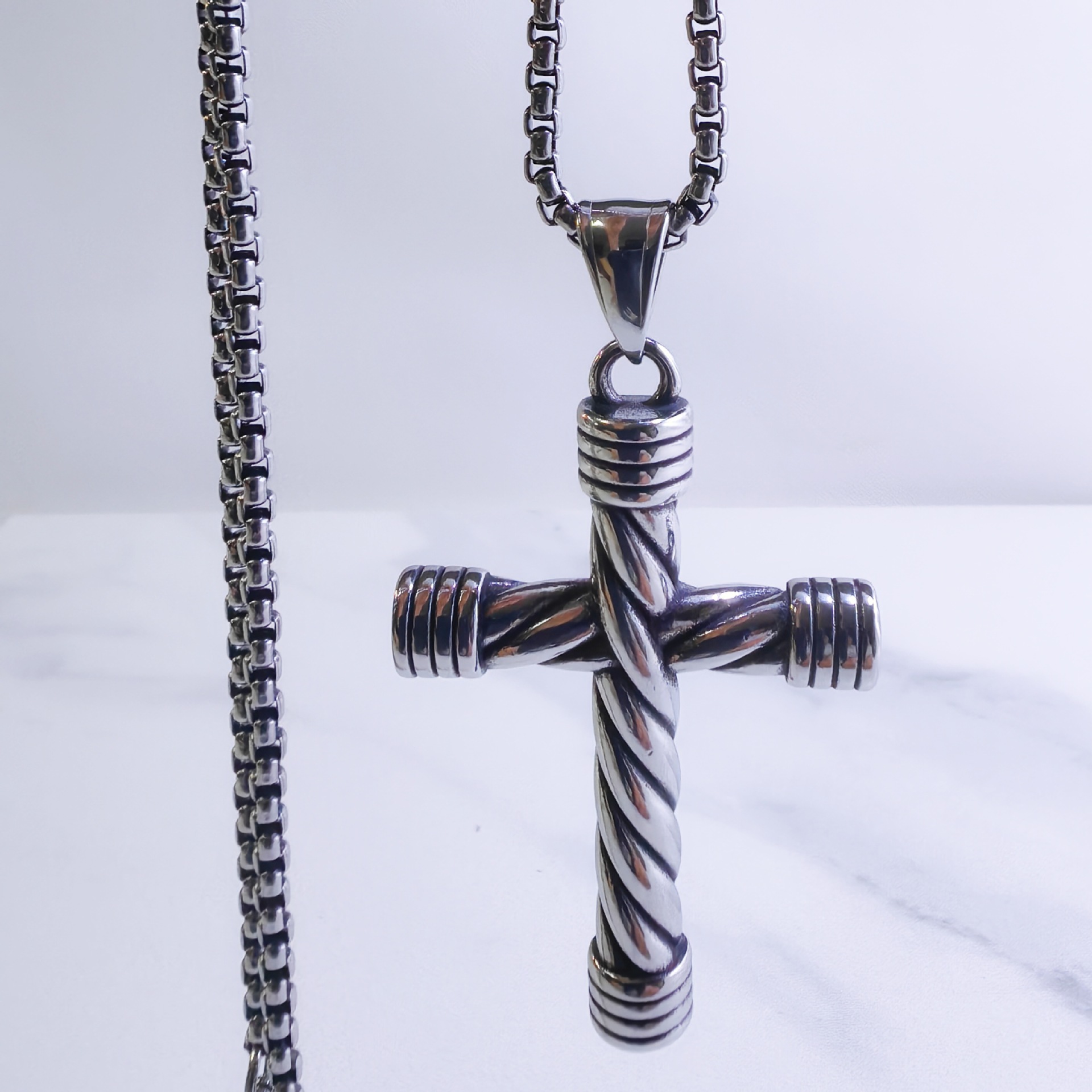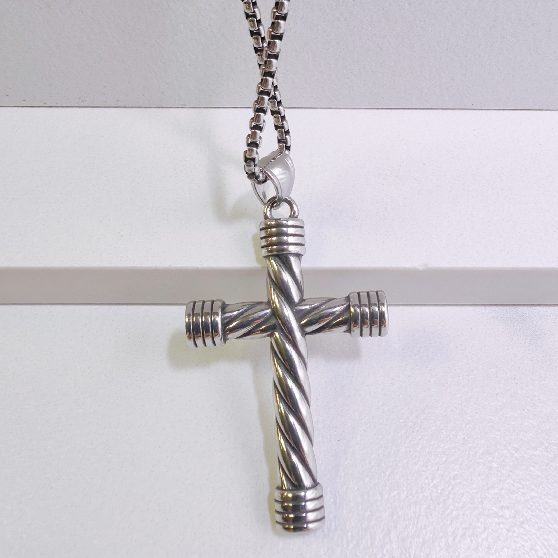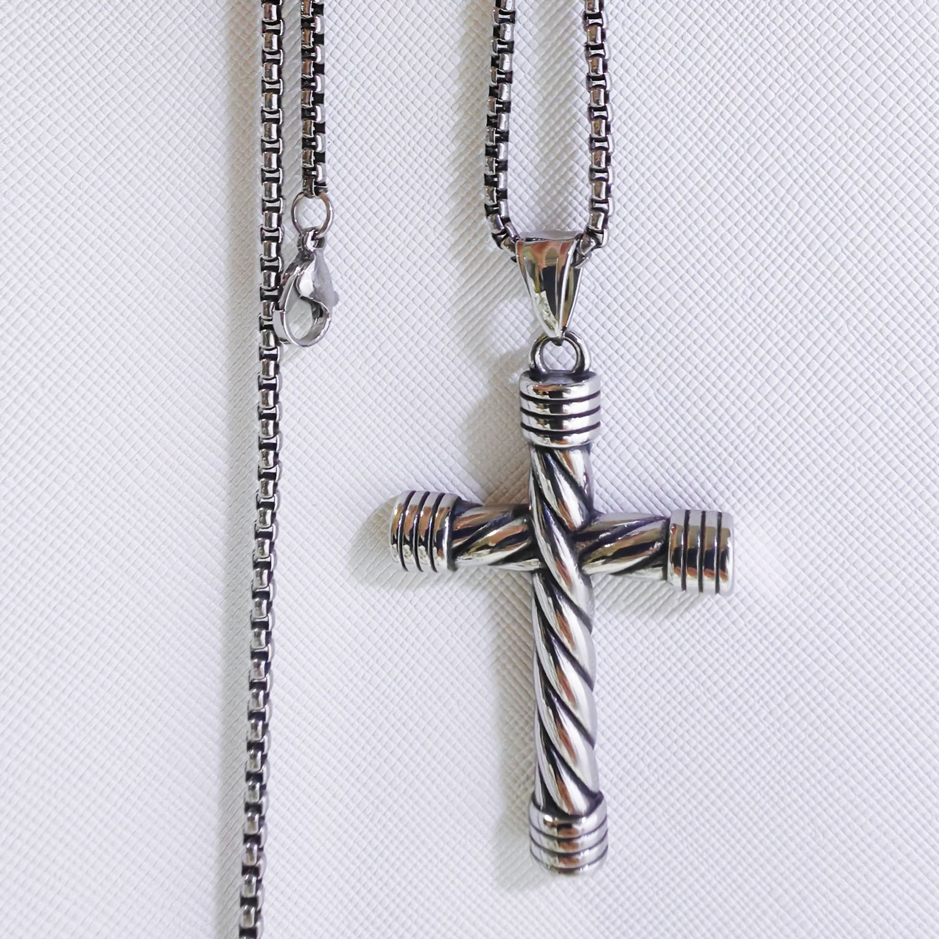 Manufacturers in stock e-commerce supply trendy men and women personality retro old stainless steel cylindrical cross necklace pendant