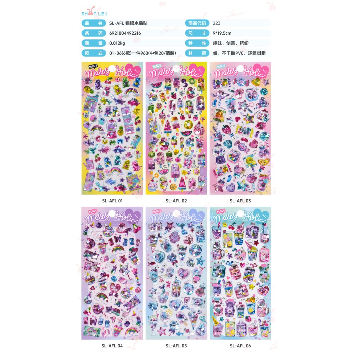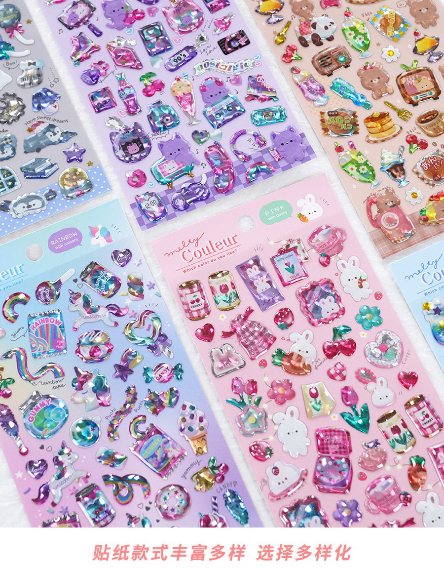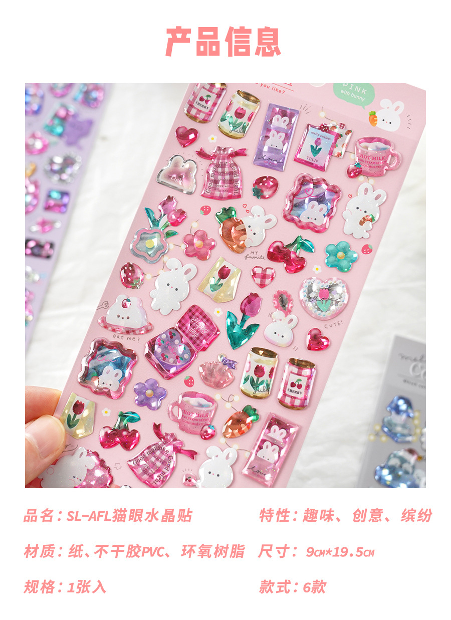 闪乐猫眼水晶贴7-12款 儿童卡通贴画,装饰水杯,日记本,海报,手机壳~