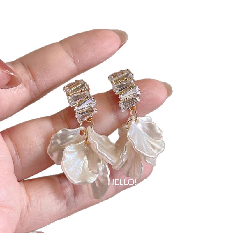 Color: 69#Sparkling diamond willow leaf tassel long earrings