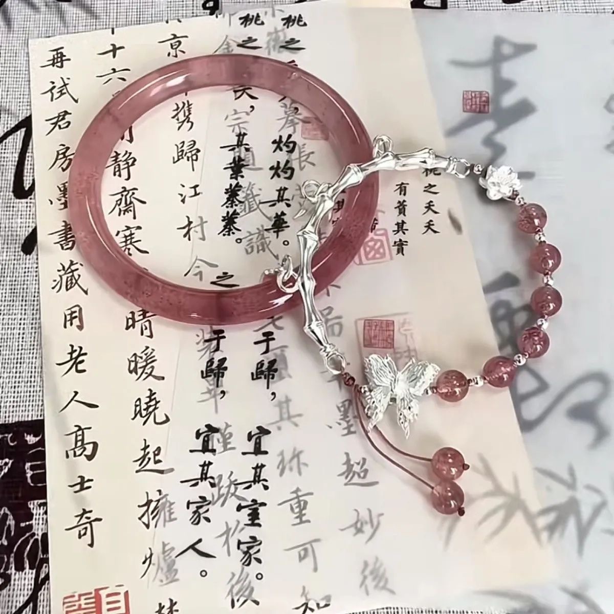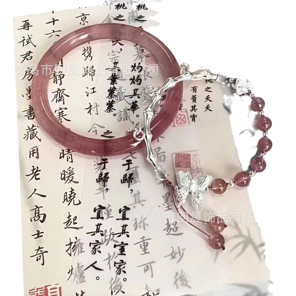 Chinese Imitation Strawberry Crystal Pink Half Bracelet Butterfly Beaded Bracelet Women's Cool Elegant Bracelet