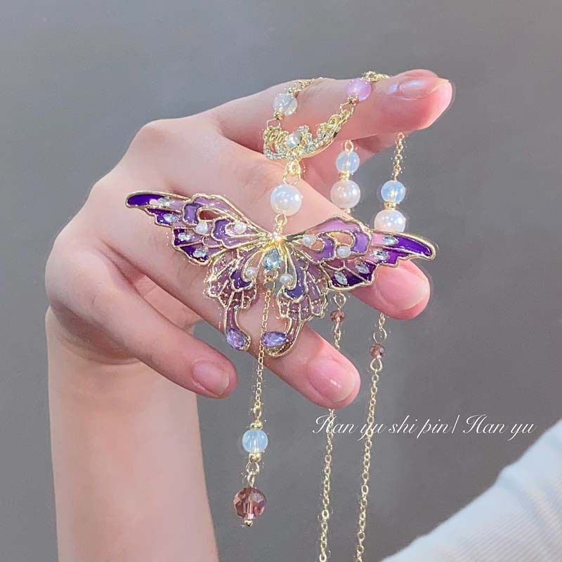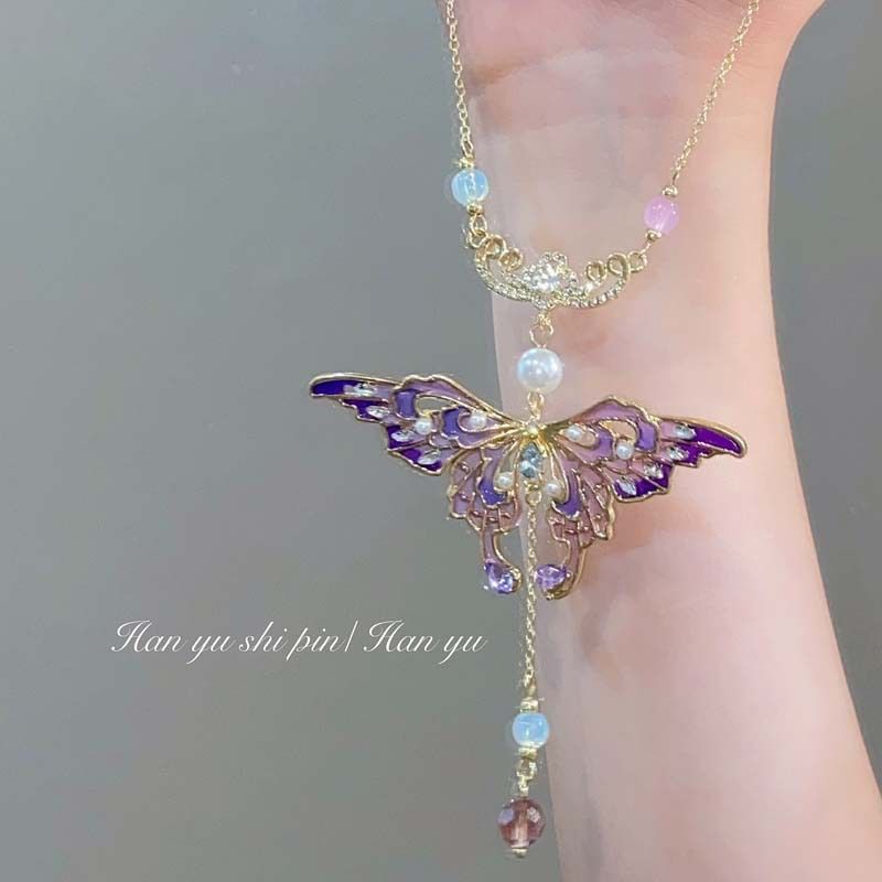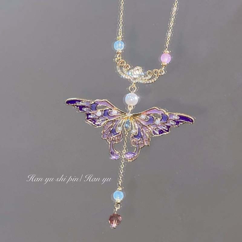 Castle girl! Vintage Court Style Water Drop Butterfly Necklace Entry Luxury Niche Heavy Industry Clavicle Chain Women's Sense