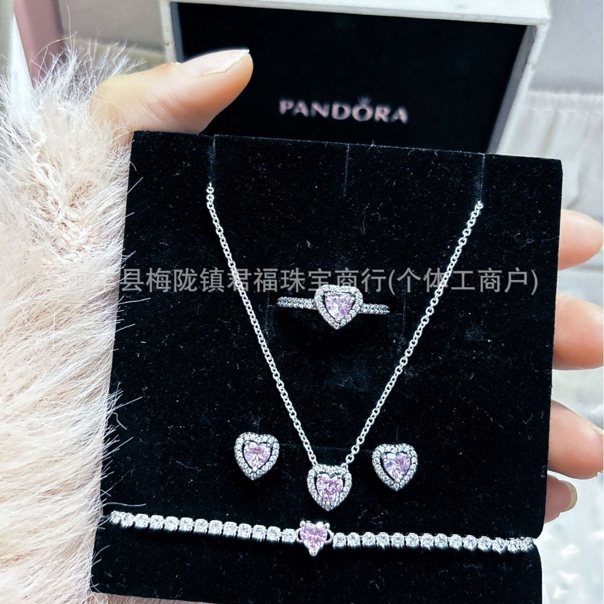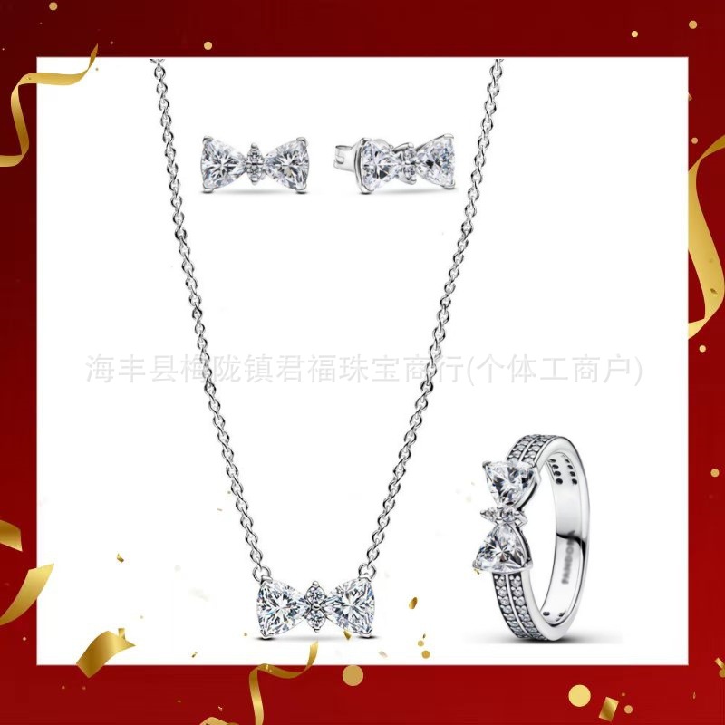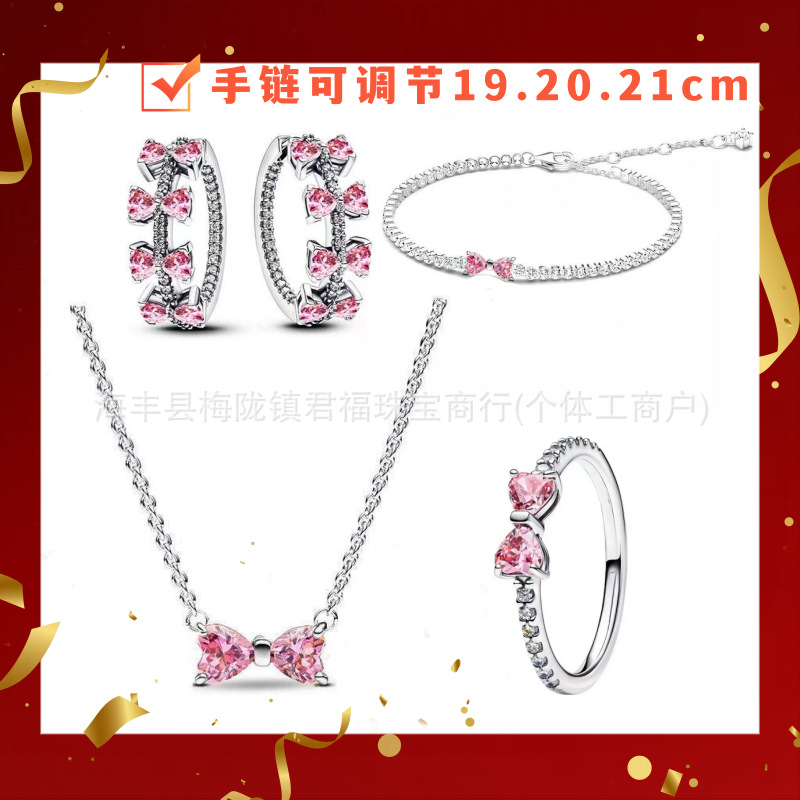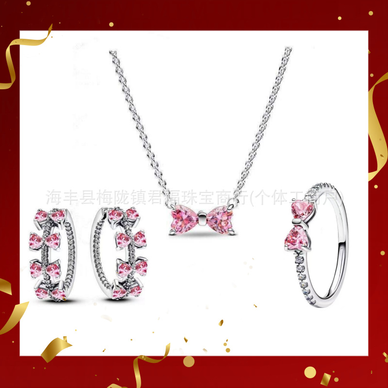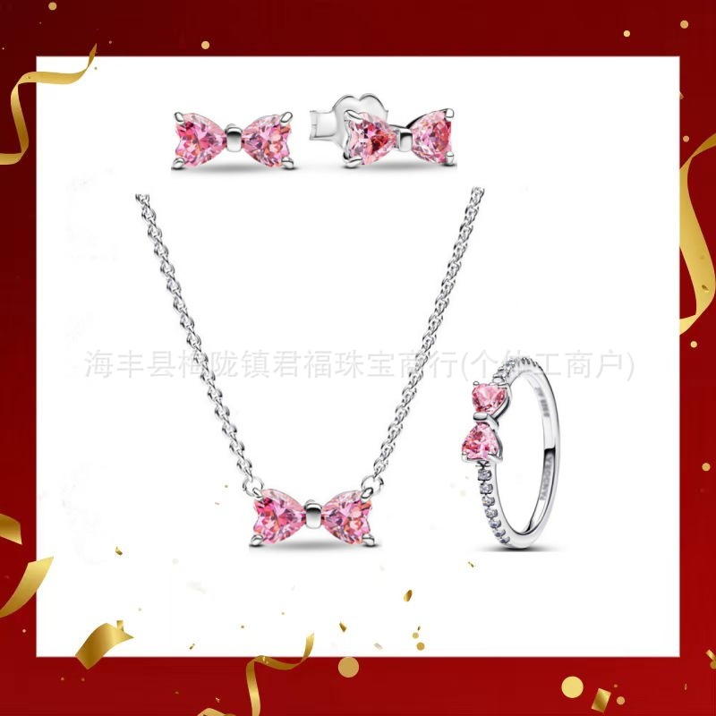 Color: Bow pink earrings four-piece short set