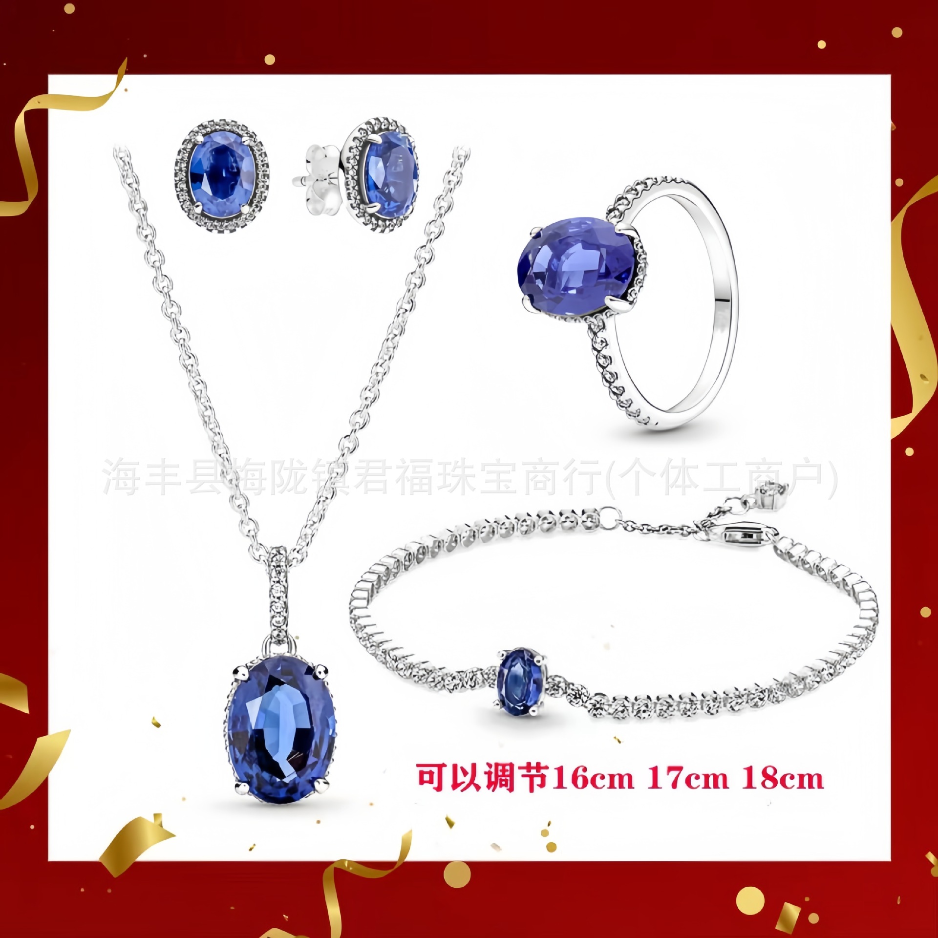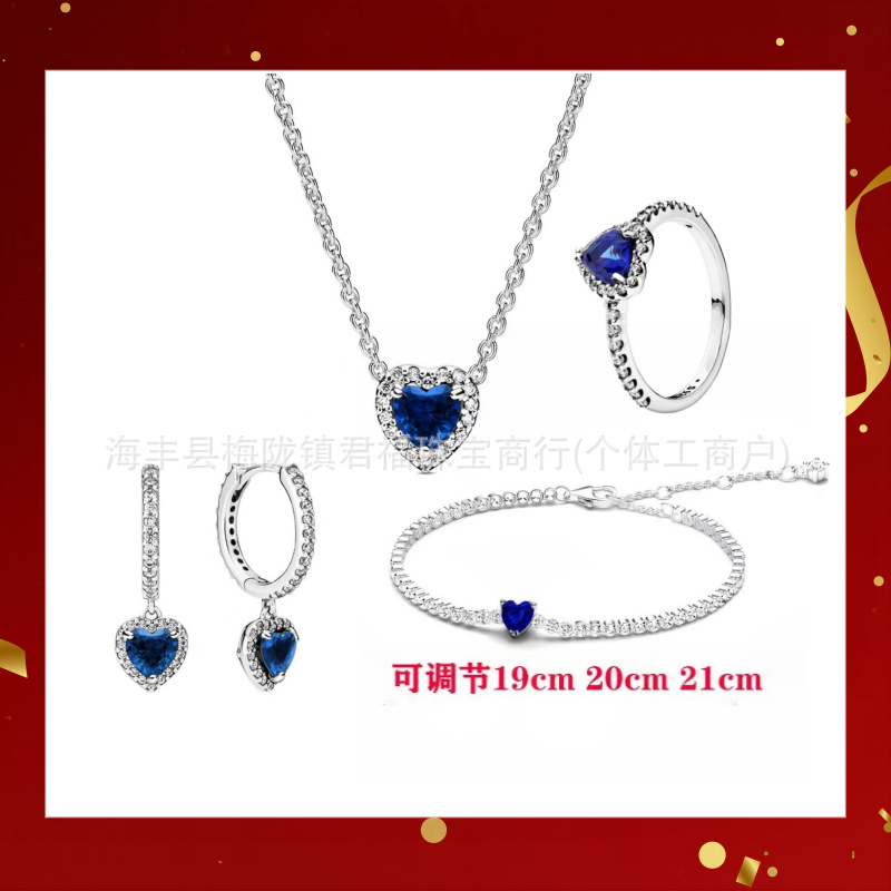 Color: Silver blue earrings and bracelet short 4-piece set