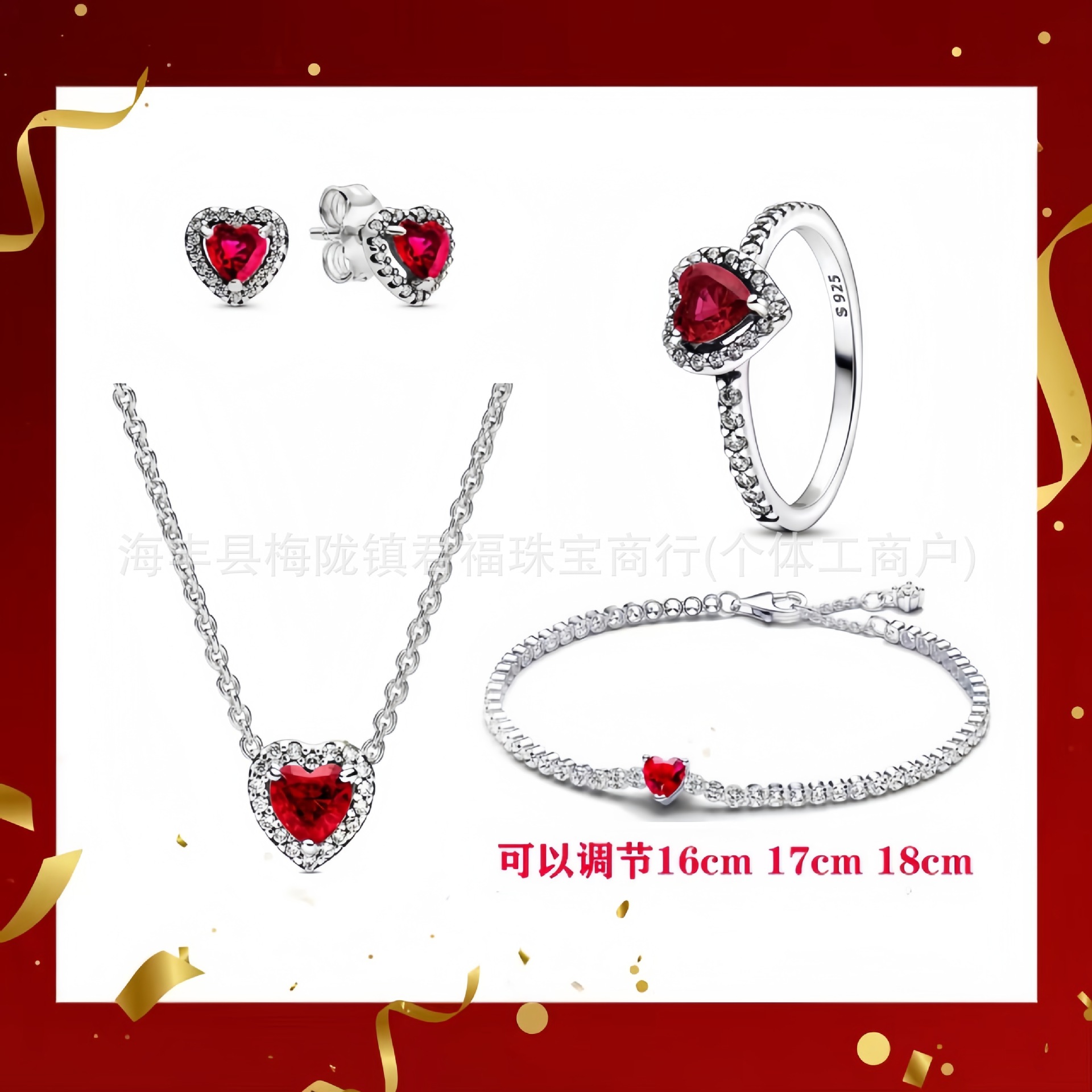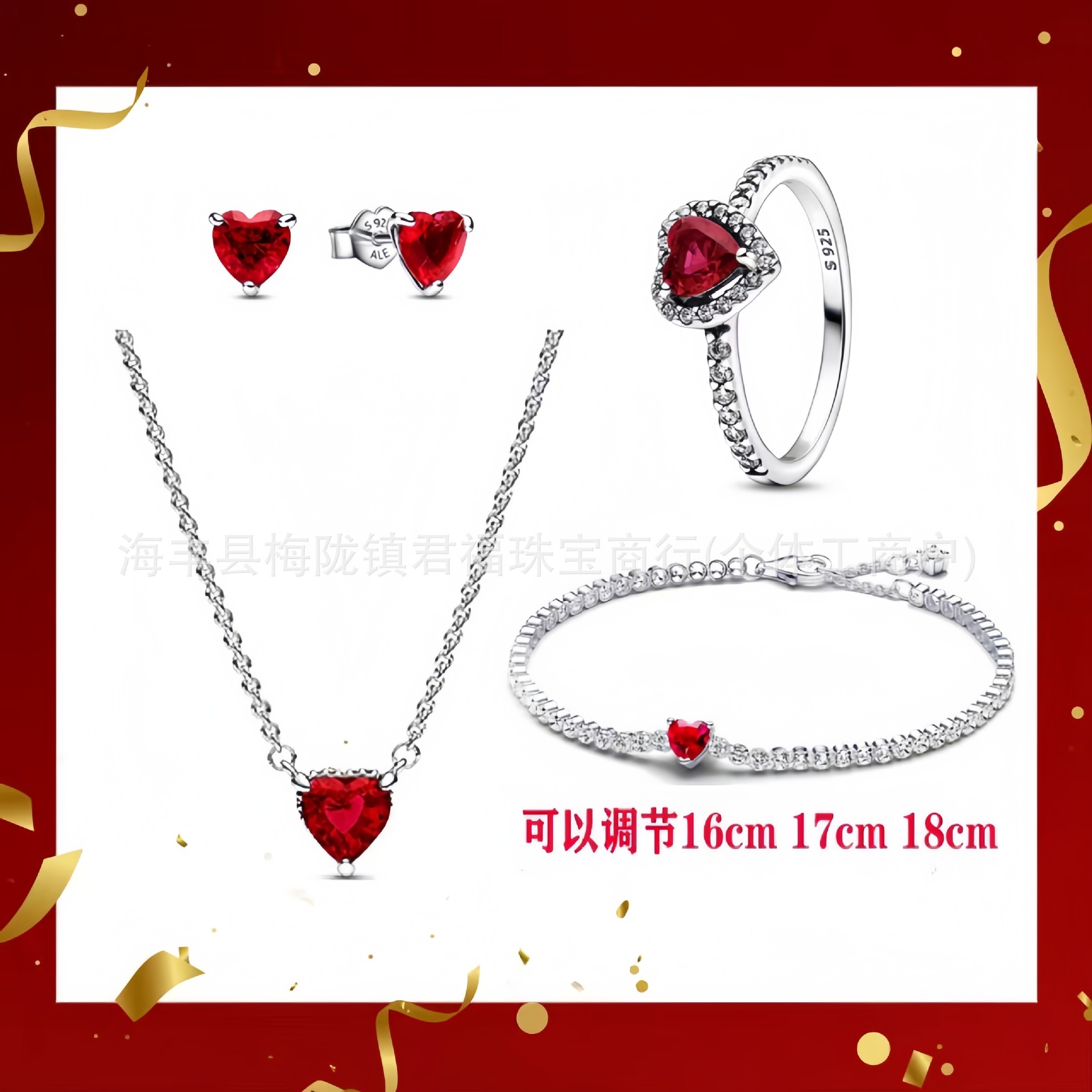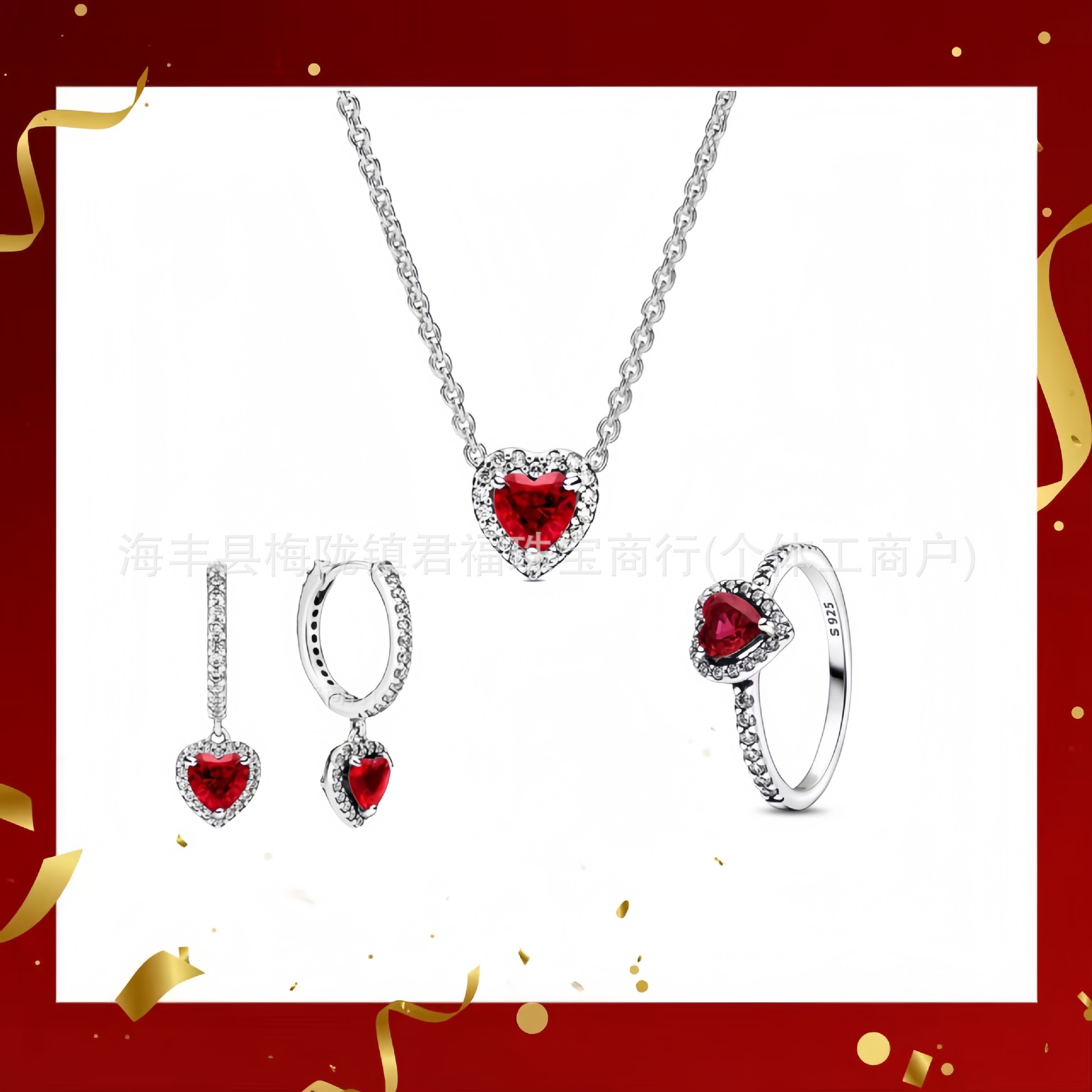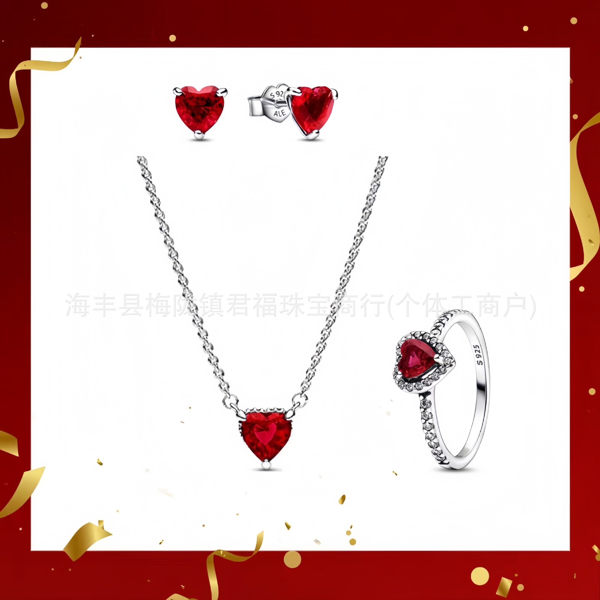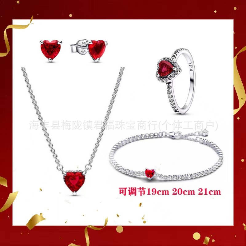 Color: Silver red earrings 4-piece short set