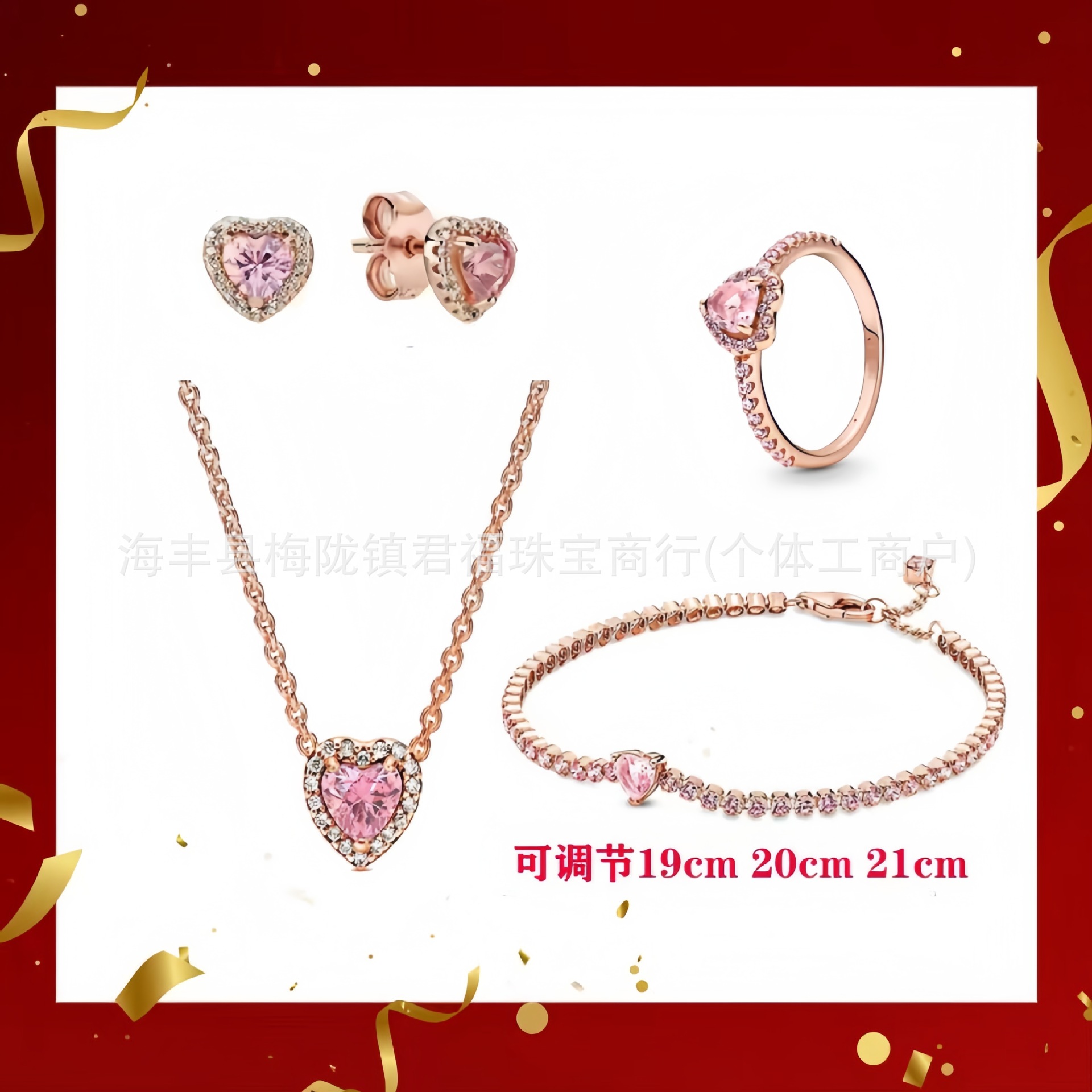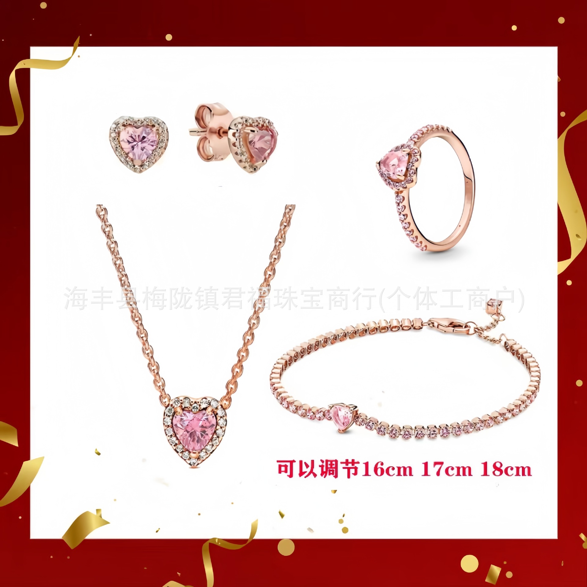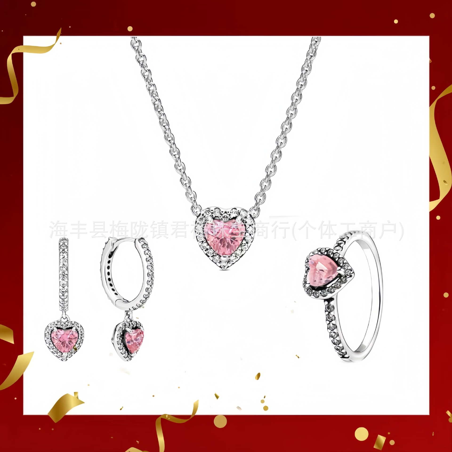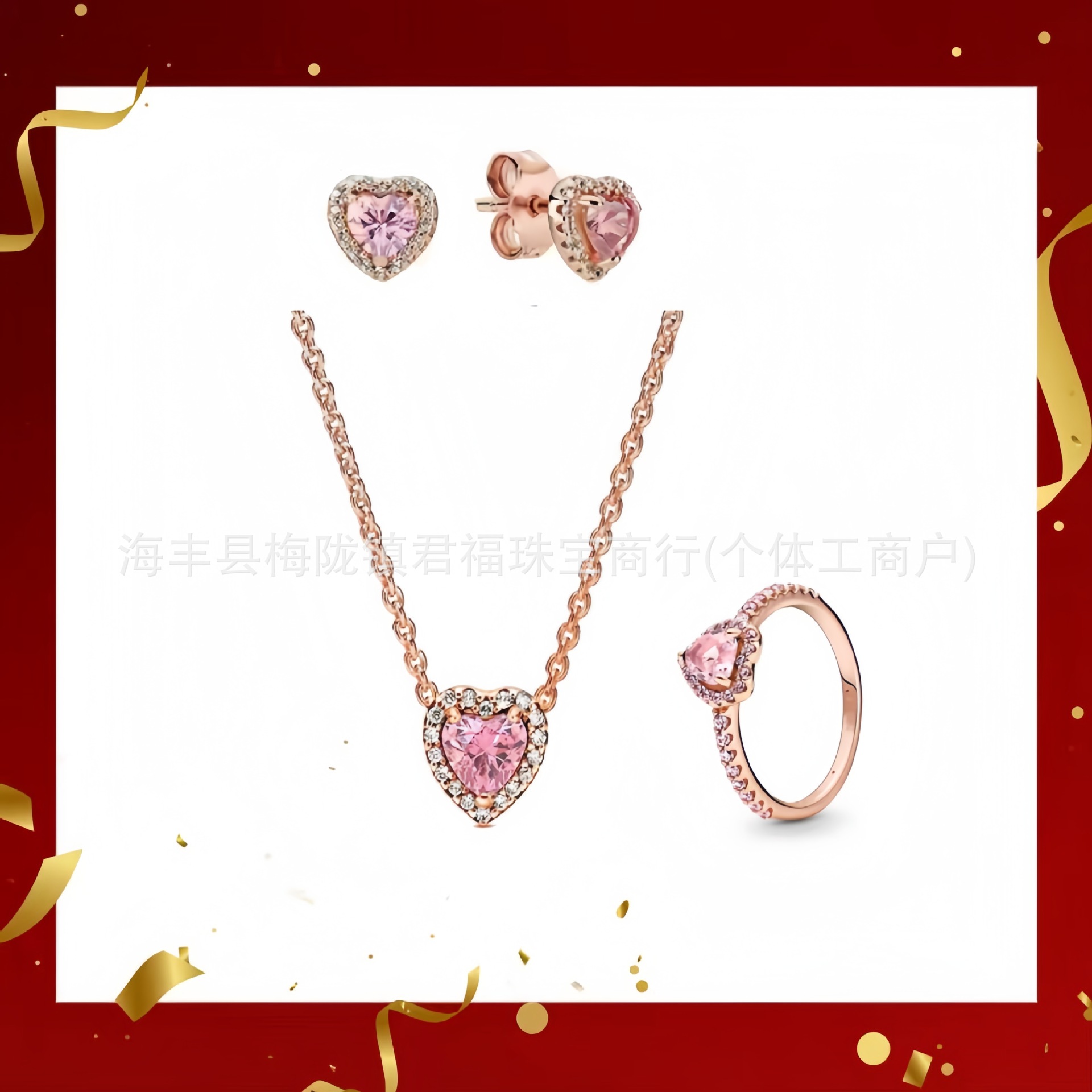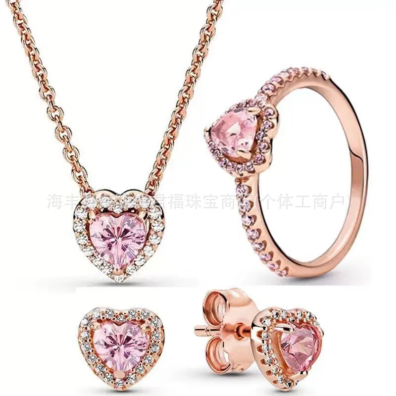 Color: Pink heart earrings three-piece set