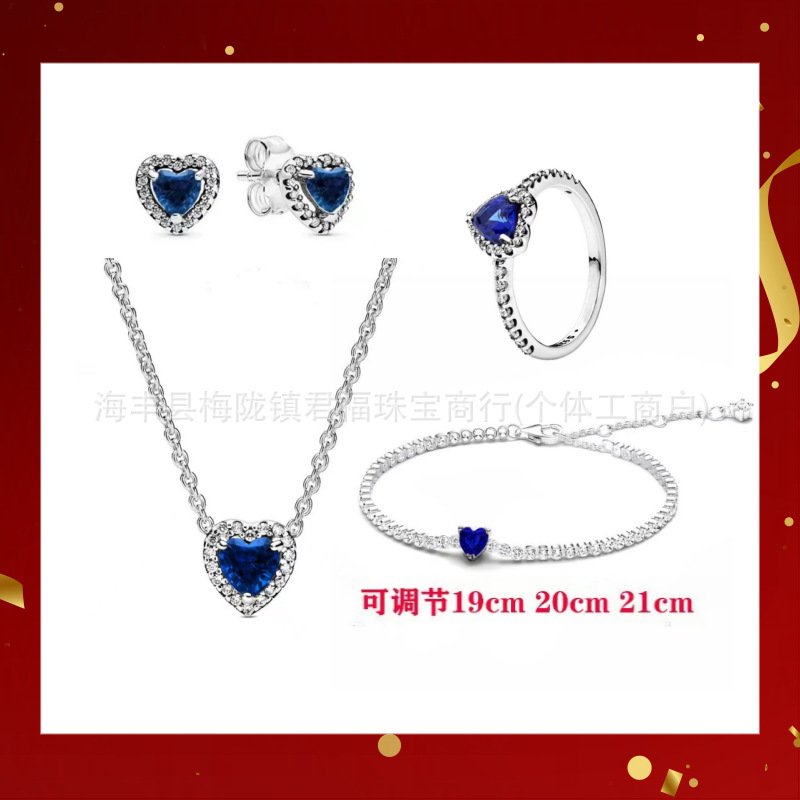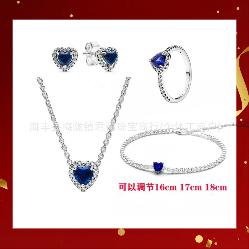 Color: Silver blue stud earrings and bracelet short 4-piece set