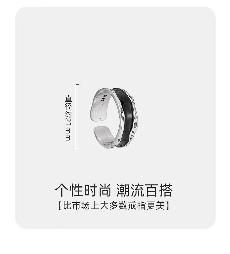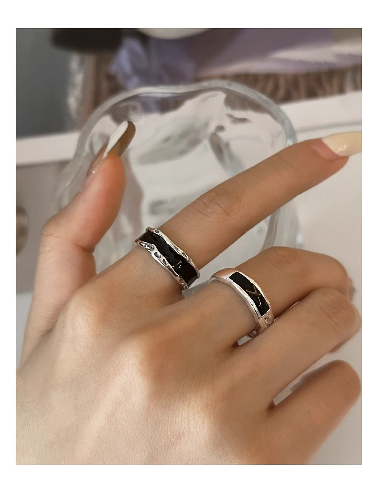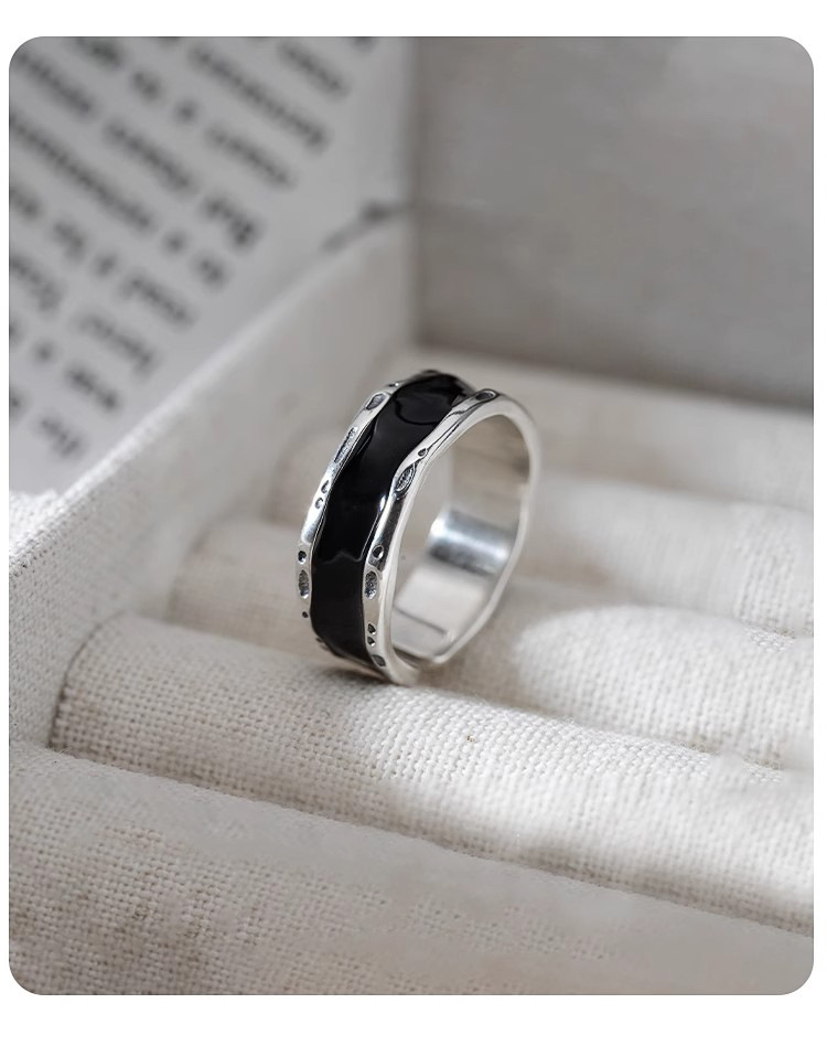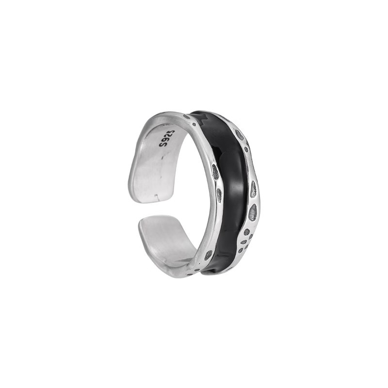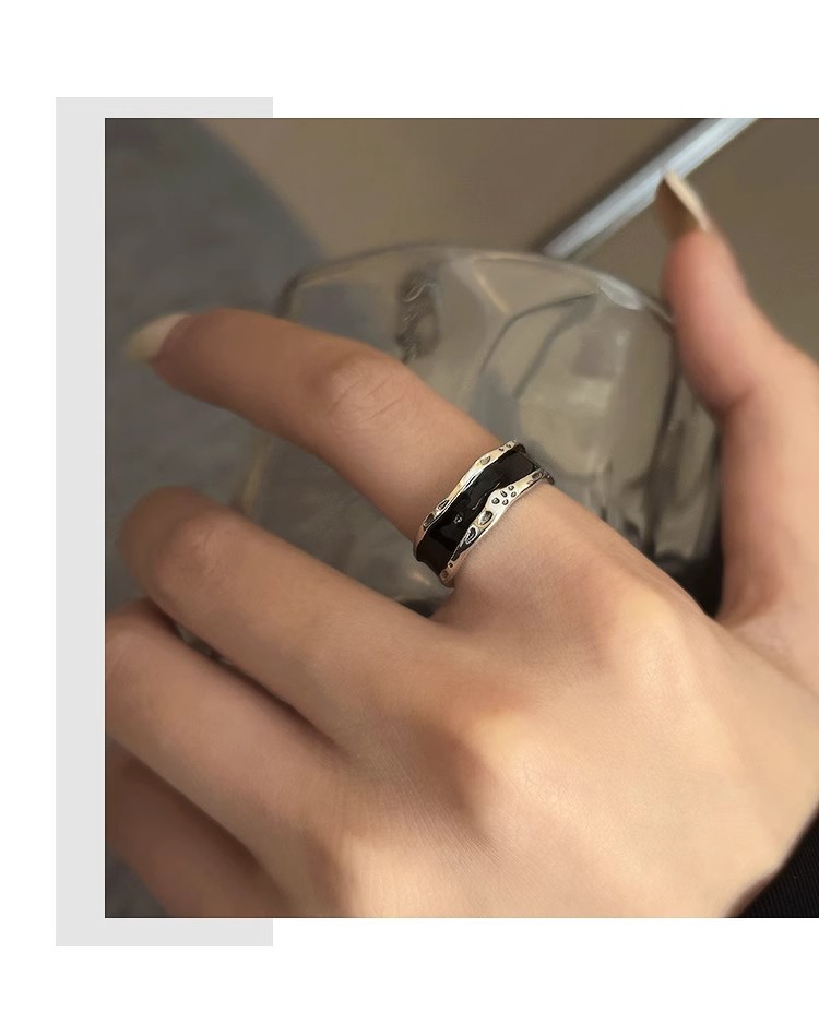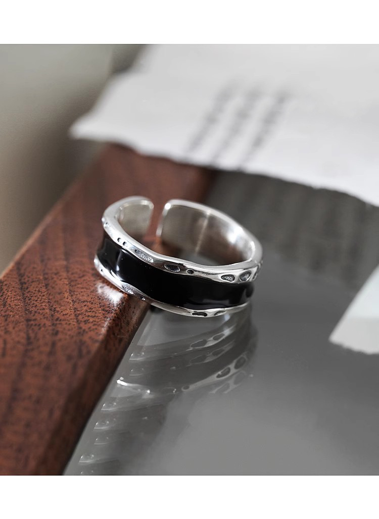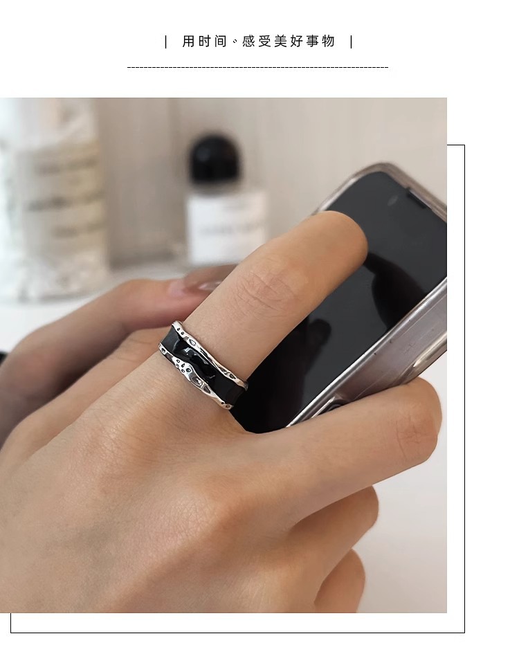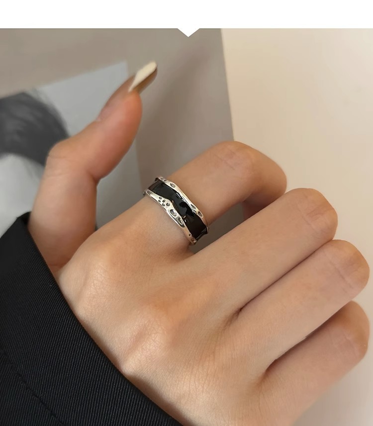 Sunrise Black Dropping Glaze Index Finger Ring for Women's Niche Design Simple High-end Fashion Personality Opening Ring Trendy