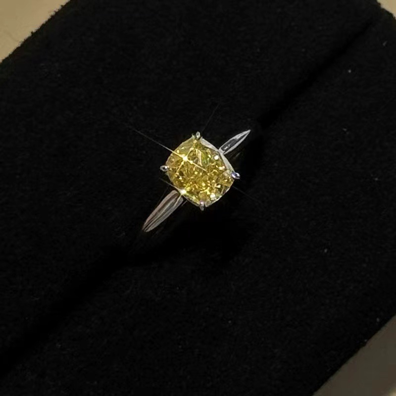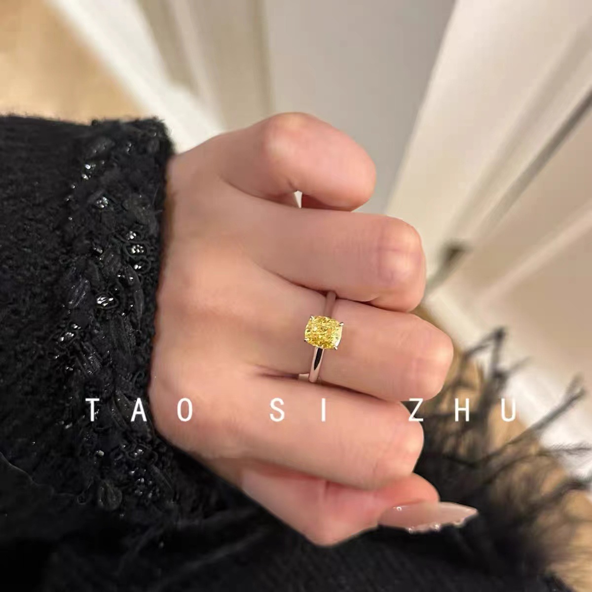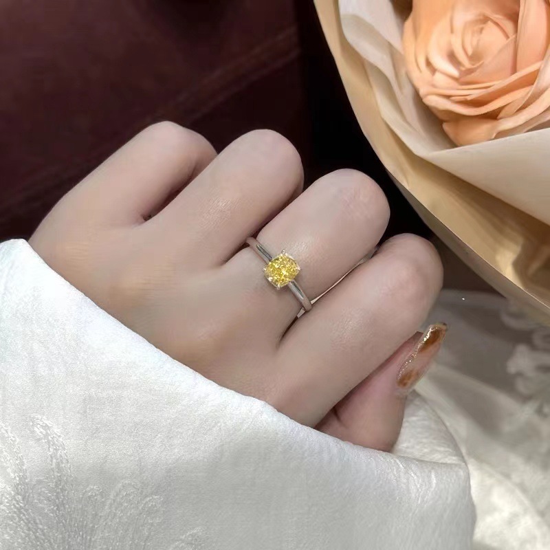 Lucid Yellow Diamond Niche Designer Internet Celebrity Korean-style All-match Simple Light Luxury High-end Sense Zircon Open Ring Women's Ring