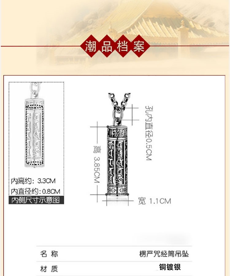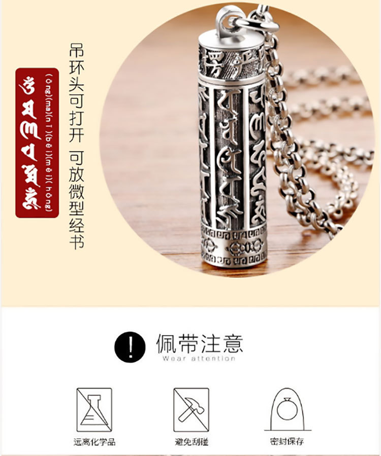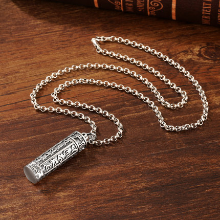 Shurangama Curse Pendant Necklace Men's Thai Silver Portable Hollow Openable Heart Sutra Pendant Women's Retro Benmingnian Wool Chain