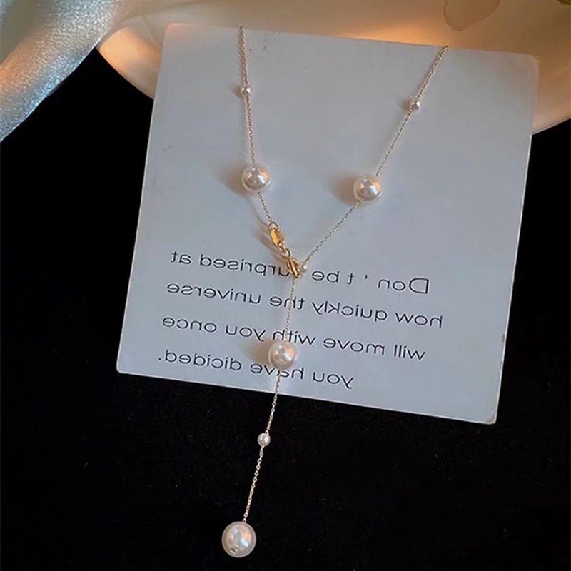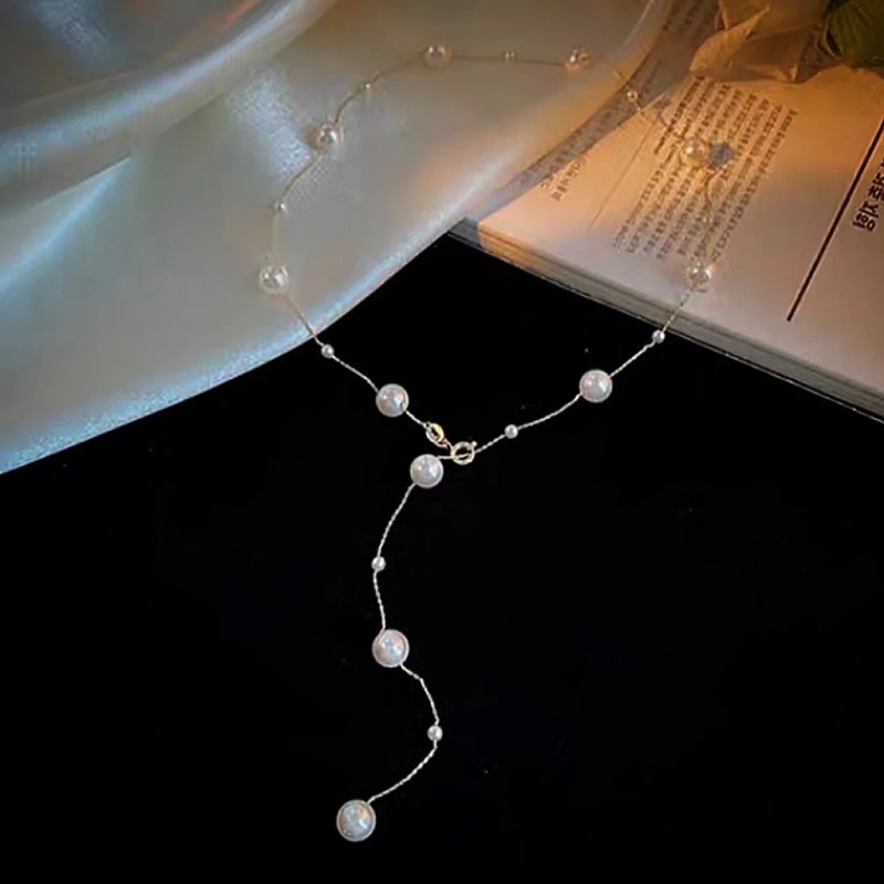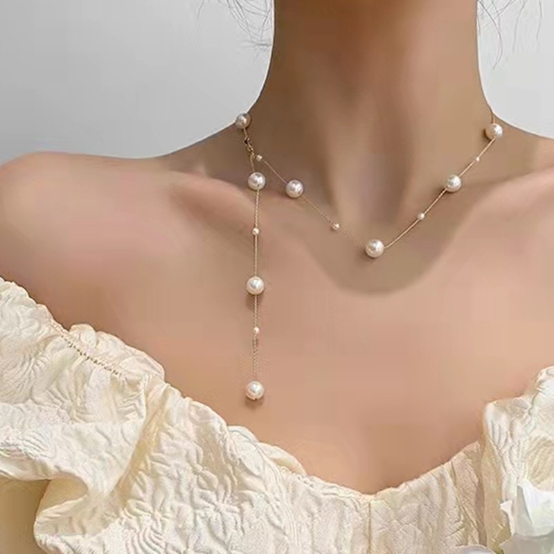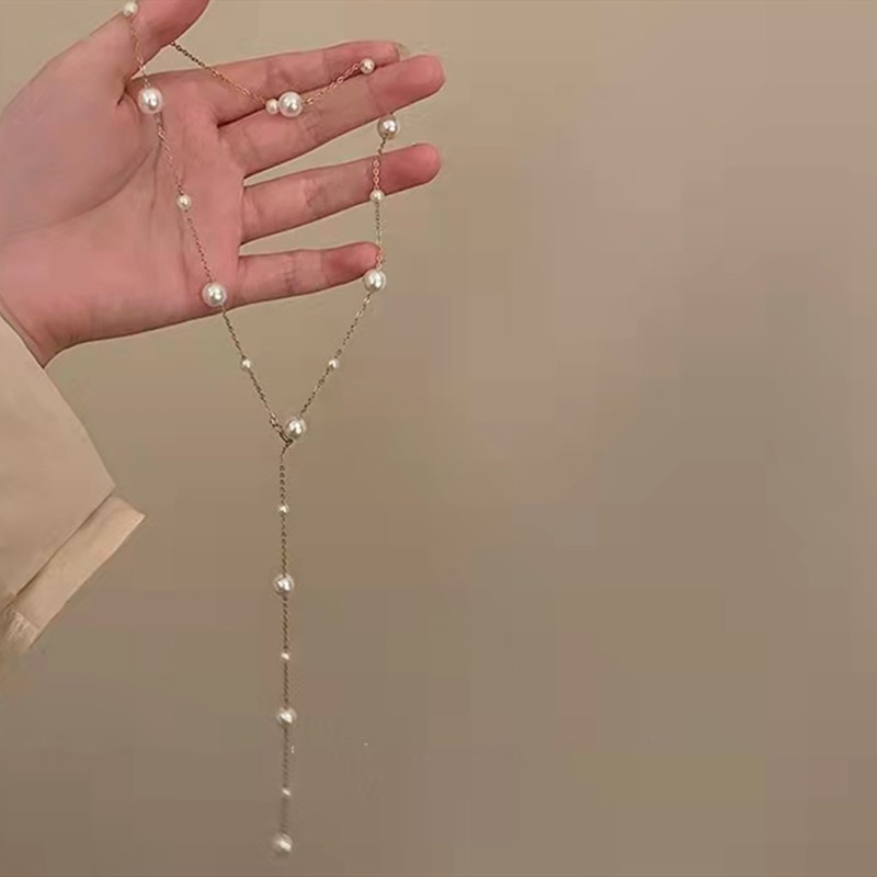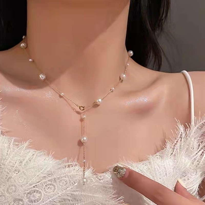 Sexy Pure Desire Style Pearl Tassel Clavicle Chain Fashion Simple High-end Sense Elegant Trend Various Wearing Necklace