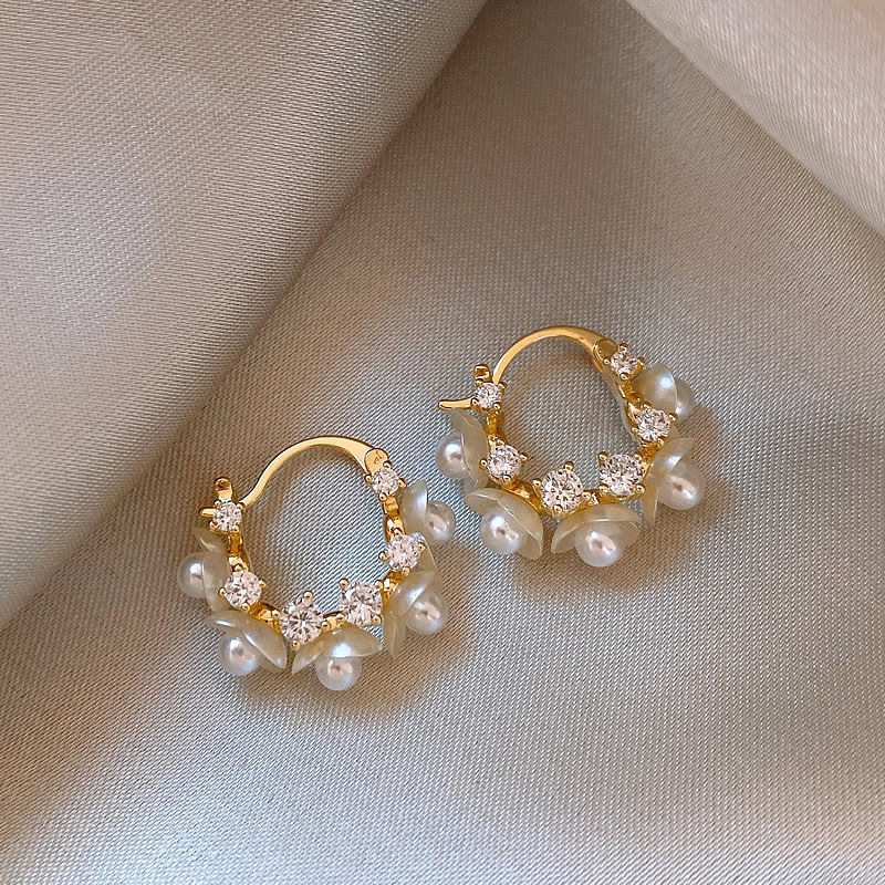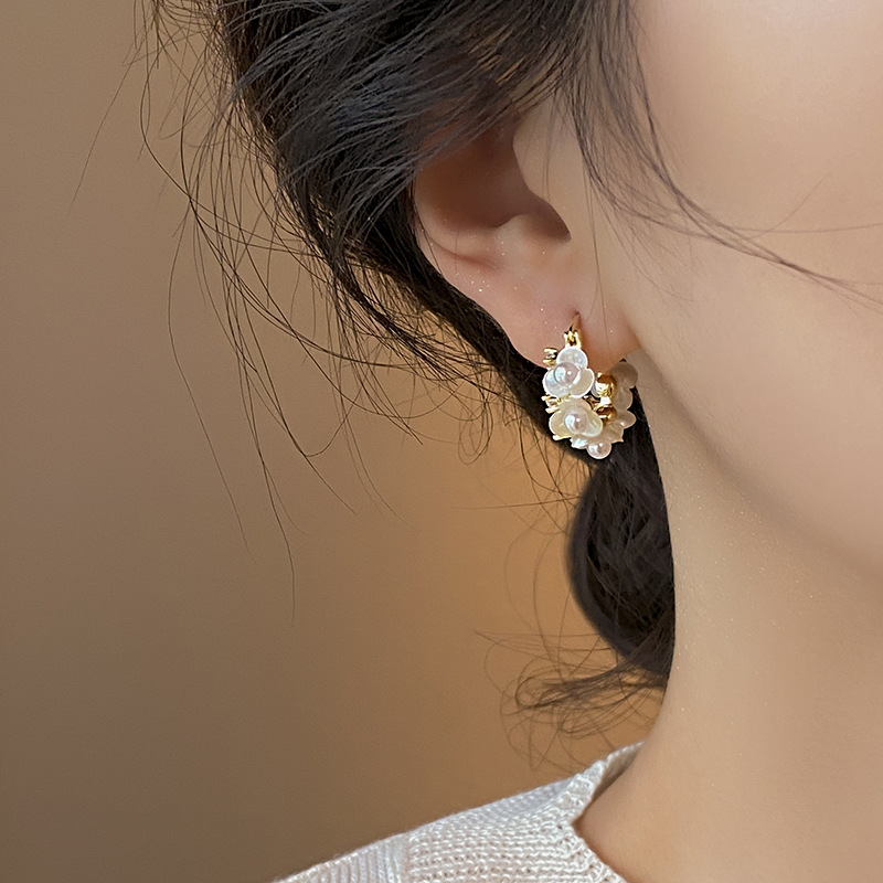 Guriya Pearl Flower Earrings Niche Design Ear Buckle Advanced Ear Accessories Women 2024 New Explosions Earrings