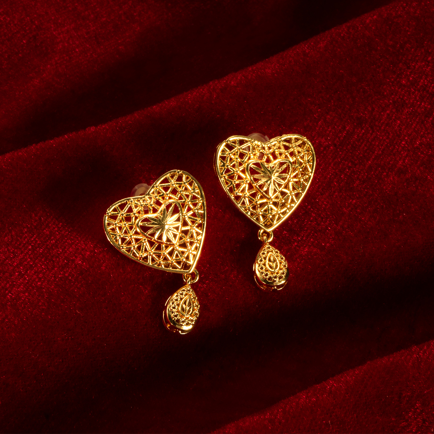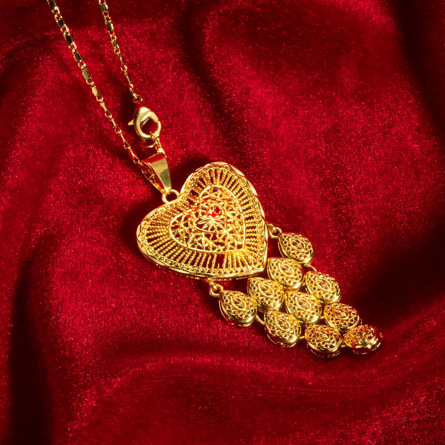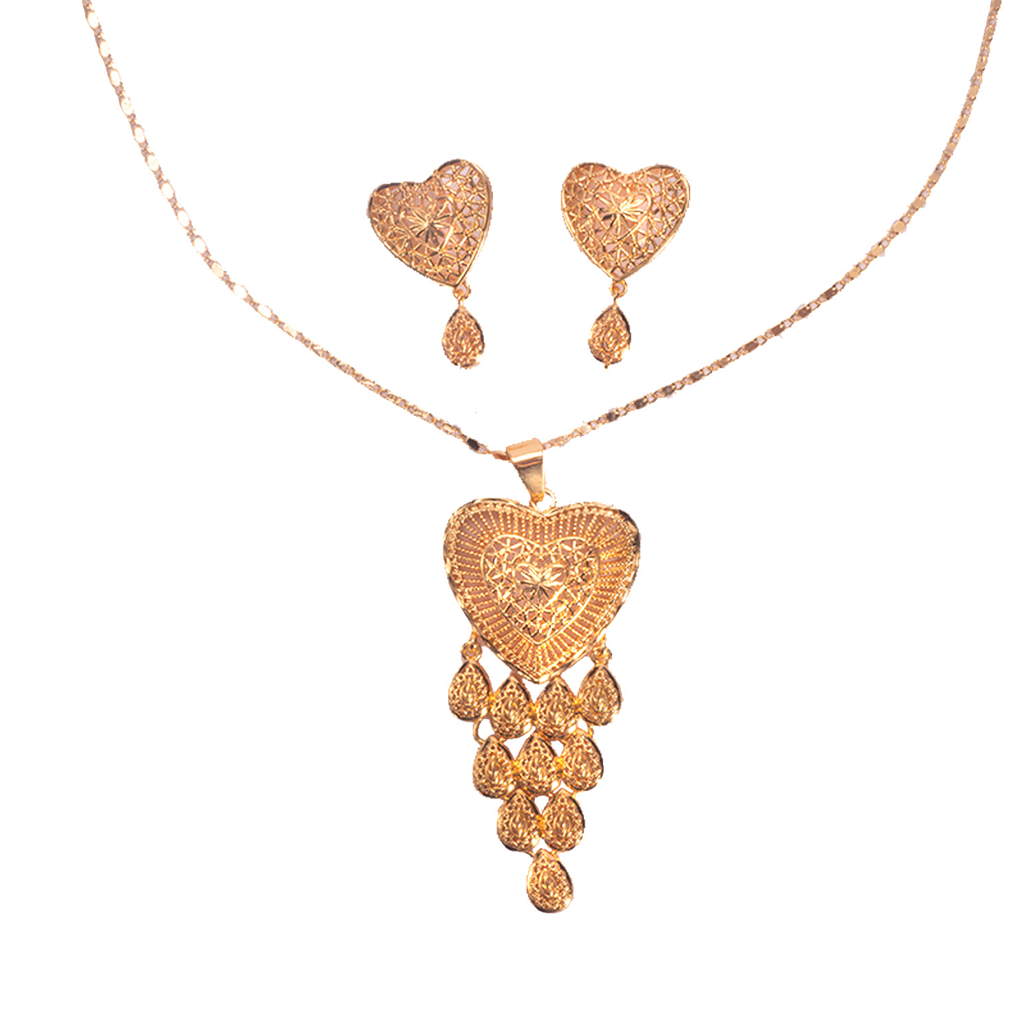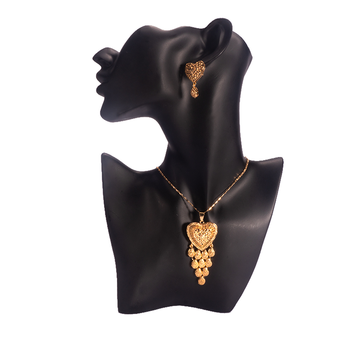 Dubai Jewelry suit Women's 24K Gold Plated Heart Pendant Necklace Earrings Wedding Party Africa Two Piece Set